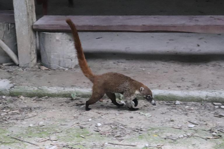 Nous nous présentons à 6h00 à l'ouverture du parc. Nous sommes seuls ce matin, une brume assez tenace au-dessus de nos têtes. Nous entrons, quelques singes hurleurs se font entendre au loin, les coatis traversent le chemin indifférents à notre présence. Nous pénétrons dans la jungle, un poil anxieux.