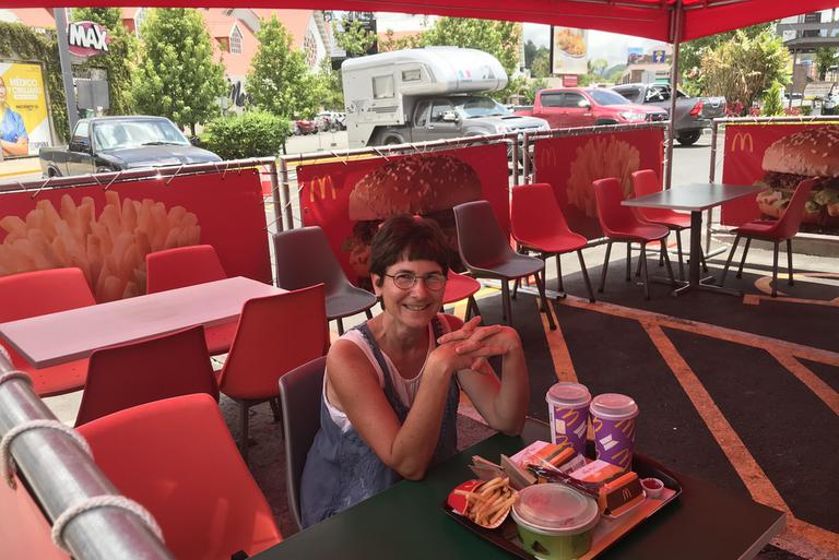 Nous retrouvons l'enrobé et arrivons enfin à Coban. une grande zone commerciale se présente à l'entrée de la ville avec une immense enseigne Mac Donald. Par facilité, nous décidons de nous y arrêter, car nous sommes vendredi et nous avons beaucoup de choses à faire ici, notamment trouver une assurance, faire des courses et faire remplacer nos freins arrière...