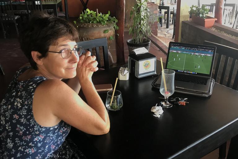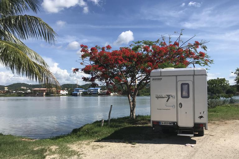 Nous revenons au camping-car et déjeunons. Nous quittons ensuite Tikal et retournons à Florès. Nous y arrivons à 15h00, je prends mon ordinateur portable sous le bras et nous nous empressons de revenir sur la terrasse du bar au bord du lac pour suivre le match France-Suisse de l'Euro... 97ème minutes, 3-3, nous mettons un moment à comprendre, le temps réglementaire est terminé et nous jouons les prolongations... Cela m'avait échappé, au Guatemala nous n'avons pas 7h00, mais 8h00 de décalage avec la France...