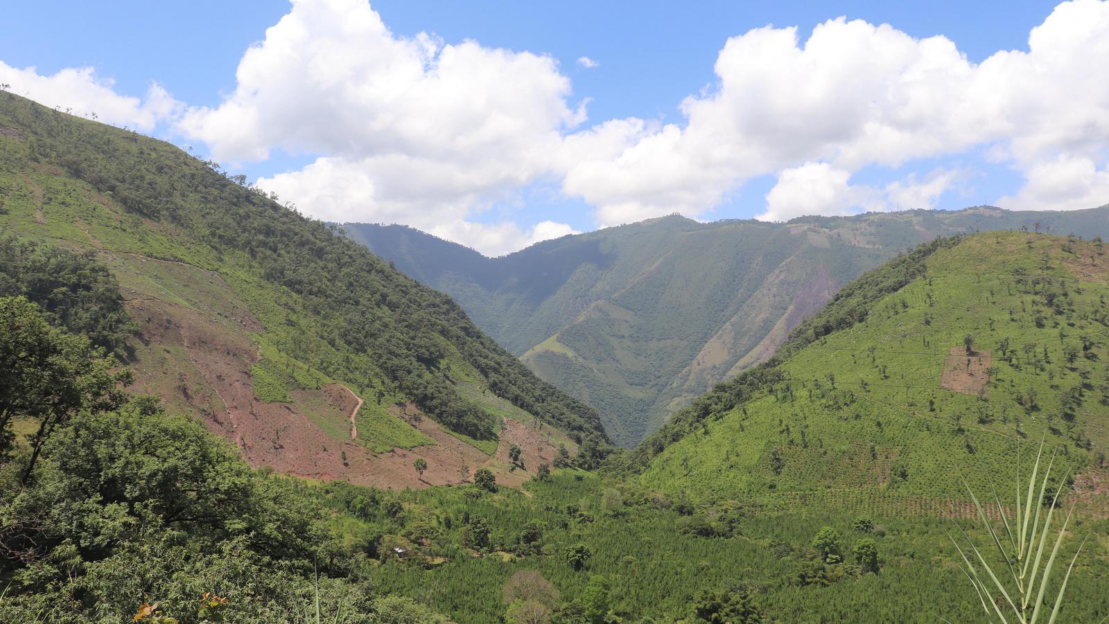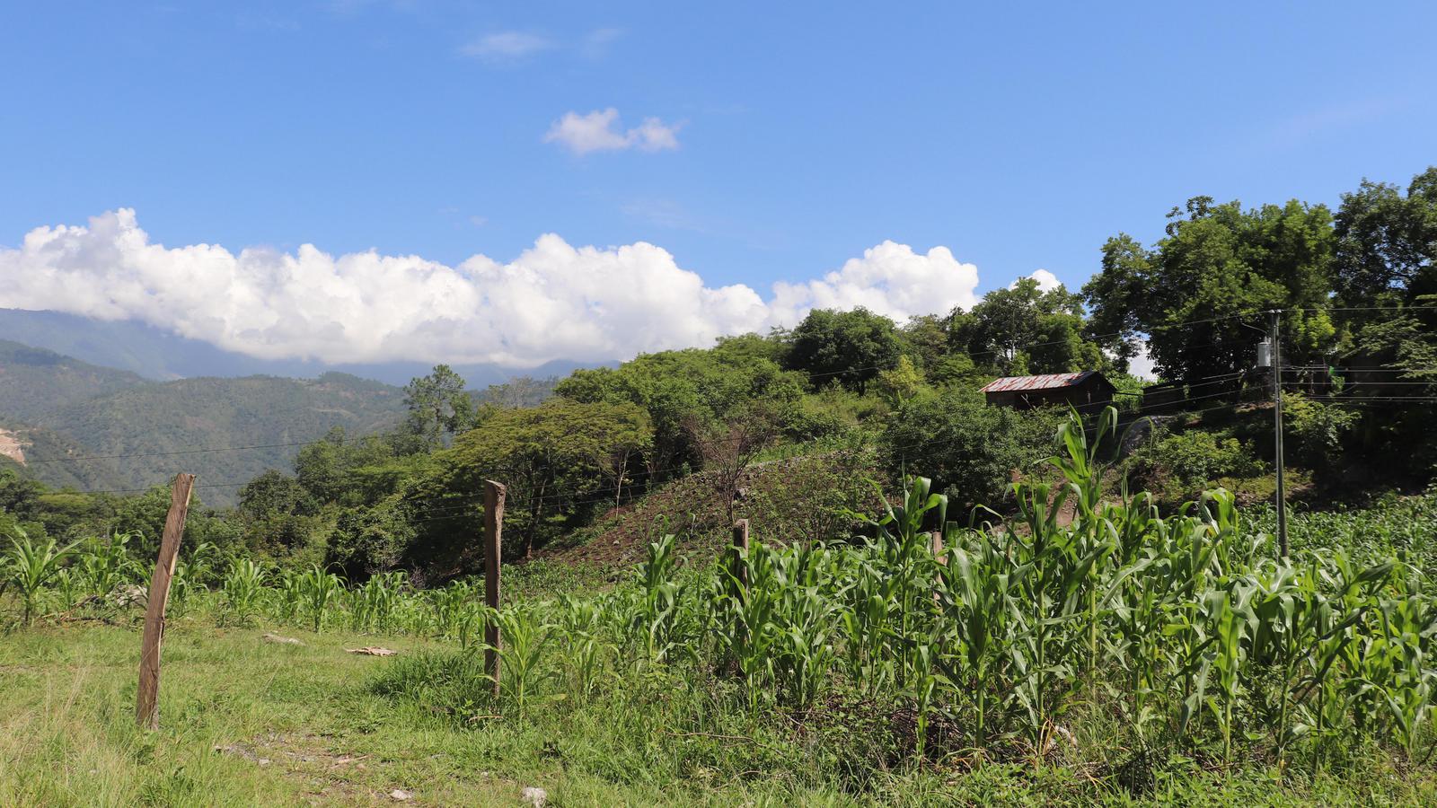Nous constatons également que petit à petit, la forêt laisse place à des cultures de maïs. Cette fameuse déforestation dont on parle tant, n'est pas faite ici avec de gros moyens de terrassement, mais elle progresse d'année en année autour des habitations. Et depuis le Chiapas, nous croisons tous les jours des villageois équipés de pulvérisateurs arpentant ces cultures pour répandre les produits agrochimiques à longueur de journée. Avec ces procédés rudimentaires, les surdosages sont inévitables... Sans oublier l'exposition de ces hommes aux pesticides et la pollution des eaux... Mais Coca-cola est là pour vendre de l'eau purifiée !