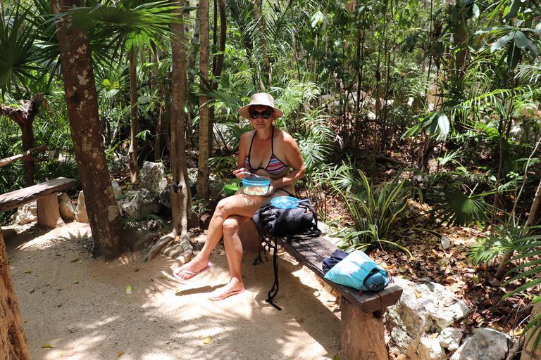 Nous poursuivons vers la frontière du Belize où nous devons refaire l'importation du véhicule pour sortir du Quintana Roo et visiter le Mexique. Nous nous arrêtons pour pique-niquer à la fraîche, au nord de la cenote Azul. A peine sommes nous revenus au camping-car que s'abat notre première pluie tropicale...