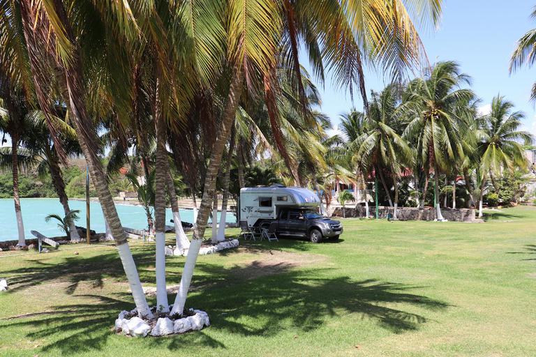 Alors que nous étions dans la cellule, nous avons aperçu un camping-car passer devant notre camping. Il ne sont pas nombreux par les temps qui courent, très vite nous en déduisons qu'il s'agit de la famille Turgeon, une famille québécoise bien connue des voyageurs puisque Rem Turgeon est le créateur du groupe Facebook "Sur les routes de l'Amérique en VR, Camping car, Van, 4x4". Isa les contacte et avant de quitter Bacalar, nous partons leur faire un petit coucou.
