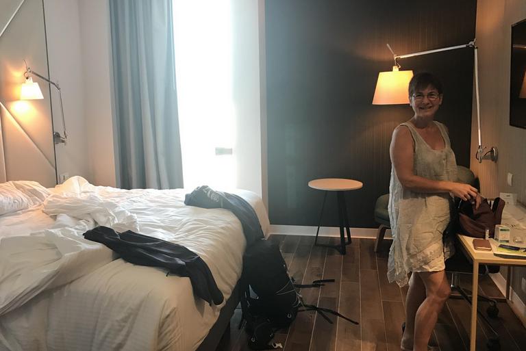 Nous sommes au NH Cancun Airport, un hôtel tout neuf, quasiment vide, au milieu de nulle part, à 8km au sud de l'aéroport et de la ville. J'ai réservé cette chambre car nous arrivons de nuit et ne savons pas dans quel état nous allons retrouver notre cellule... Nous avons également loué une voiture. A 17 euros par jour, cette option est la moins onéreuse, sachant que notre camping est perdu à 30km de la ville et que nous allons peut-être devoir revenir faire quelques achats...