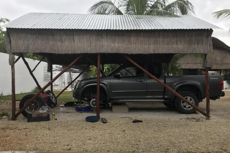 Paul me dit qu'il suffit de la recharger. Il s'en occupe tandis que nous partons à Cancun faire nos courses et chercher un garage pour la révision du pick-up.
