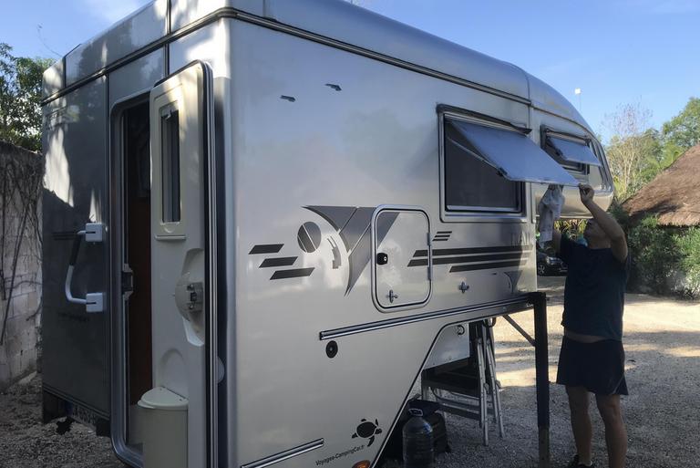 Nous arrivons devant le Cancun RV Park à 8h30, Paul son gérant nous ouvre la grille. Nous filons directement au fond du camping pour découvrir notre véhicule...