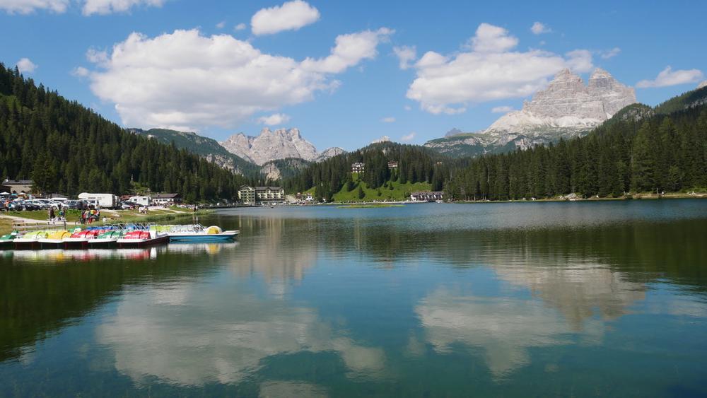 En cours de route, nous faisons une pause photo devant les lacs d'Antorno et de Misurina. Le premier est un véritable paysage de carte postale quant au second, entouré d'hôtels et de parkings, il ne nous laissera pas un souvenir impérissable.