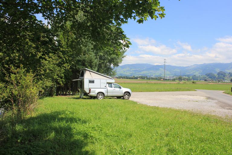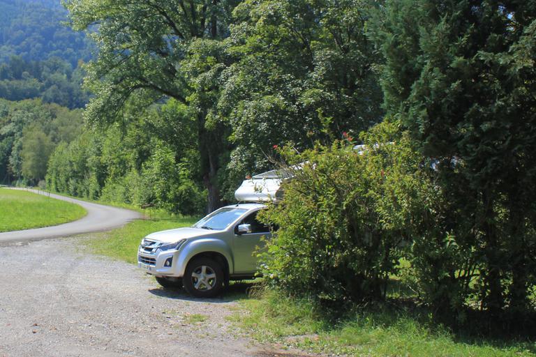 Nous entrons en Suisse à Bâle et traversons le pays dans la journée. Nous passons Zürich et son lac et déjeunons après avoir quitter l'autoroute au bord d'un ruisseau à Reichenburg.