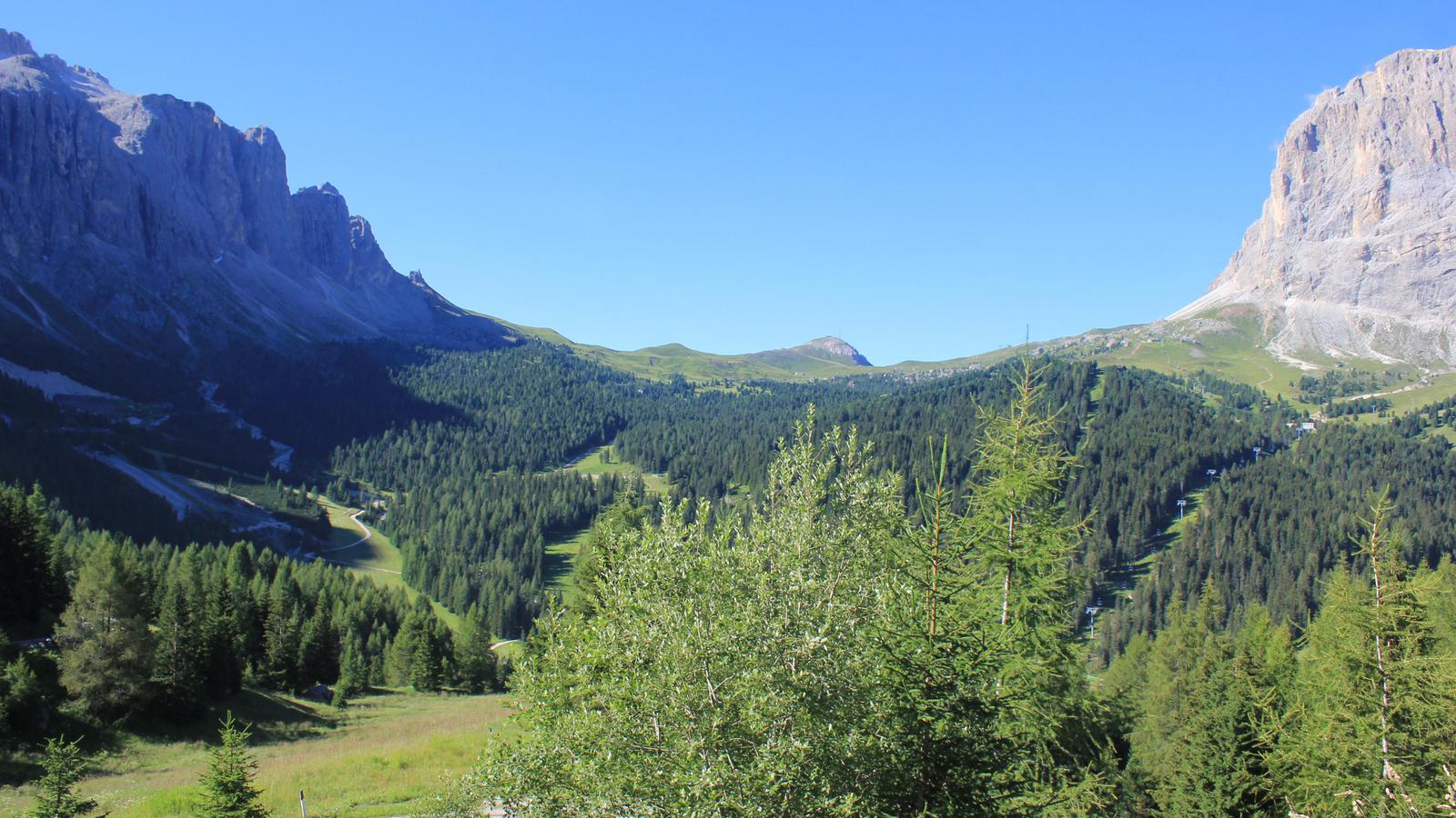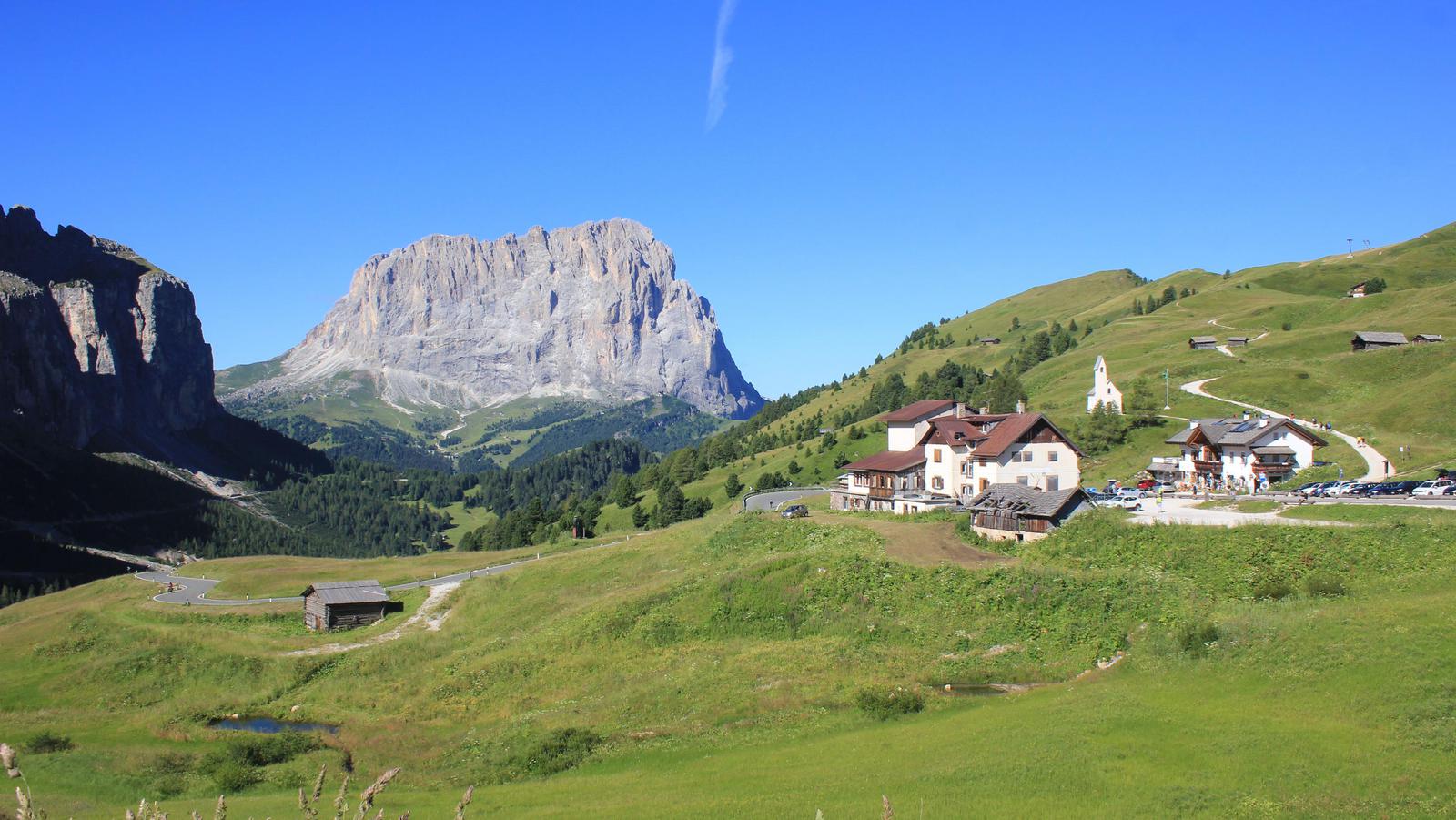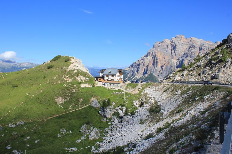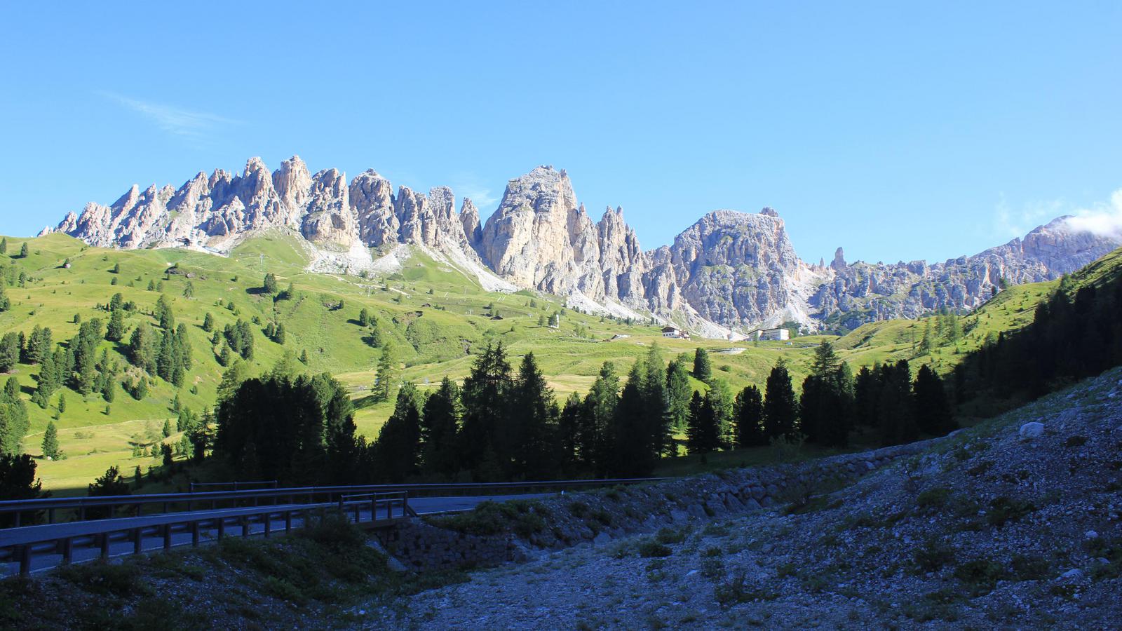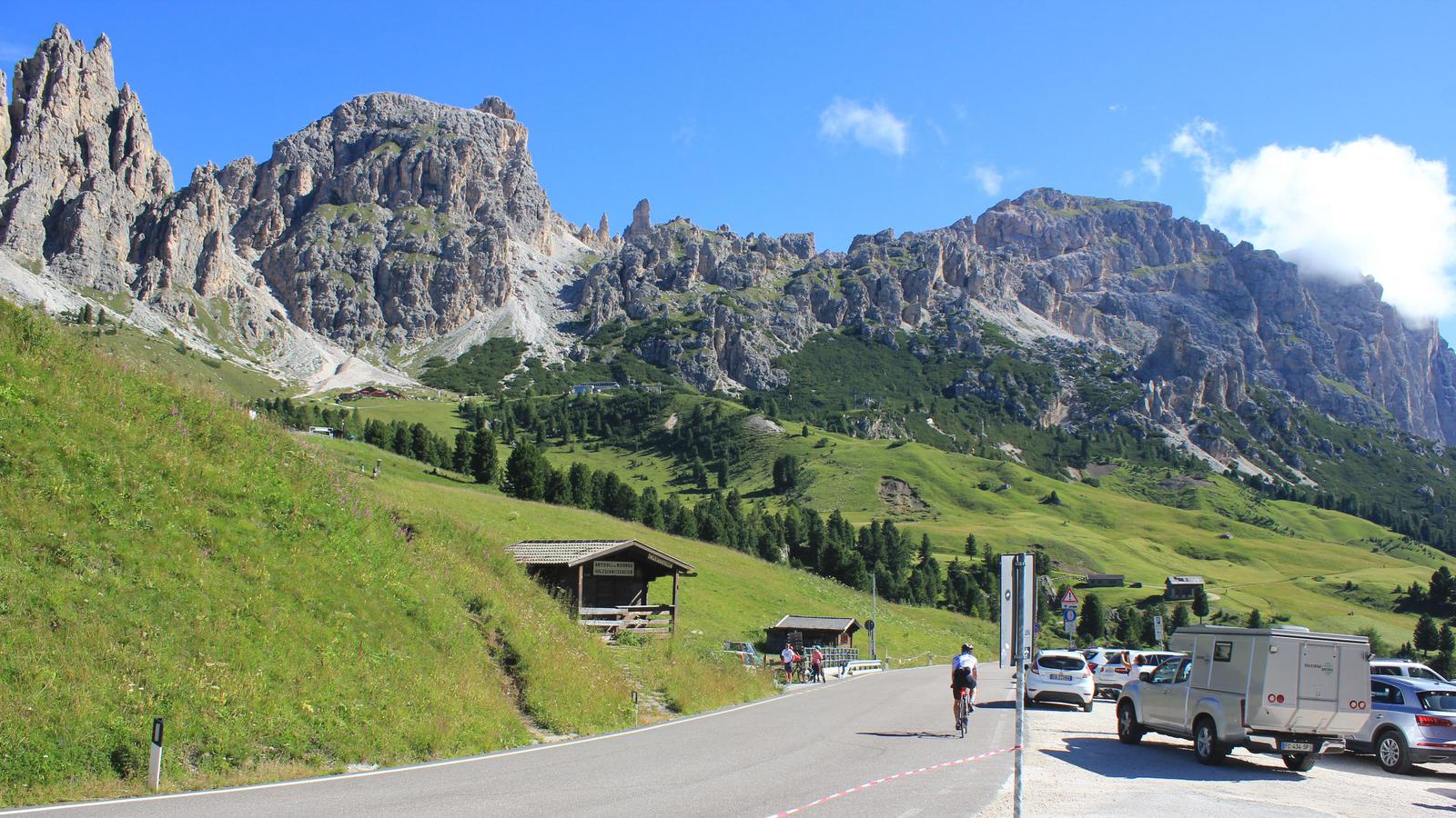 Nous traversons la station de Corvara in Badia / Kurfar et prenons la route du Passo Valparola. Nous entrons dans le parc régional des Dolomites d'Ampezzo et la Province de Belluno.