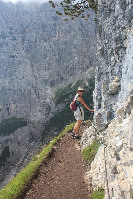 Hier, la dame du bureau du tourisme de Cortina a déconseillé à Isa cette randonnée, qu'elle décrivait comme difficile, avec des passages en via ferrata. Les informations que nous avons glânées sur internet sont toutes autres. Cela fait un peu plus d'une heure que nous marchons, nous arrivons aux fameuses échelles et il est maintenant temps de vérifier les dires de chacun...