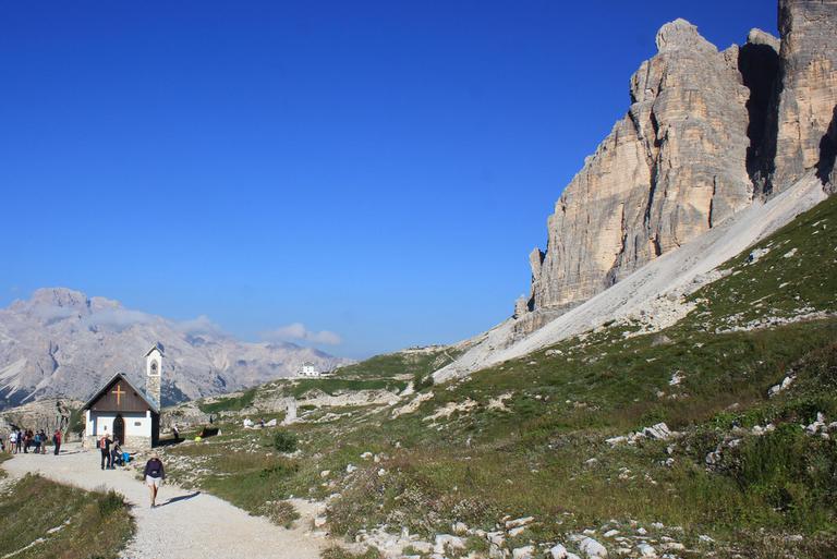 Nous passons une petite chapelle et apercevons déjà le refuge Lavaredo. Deux solutions s'offrent à nous, nous optons pour le sentier raide toujours à travers les éboulis.