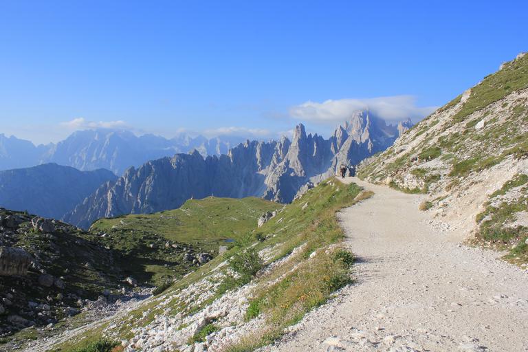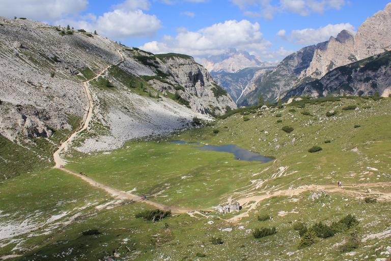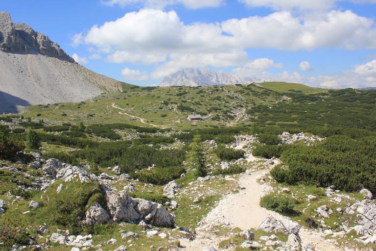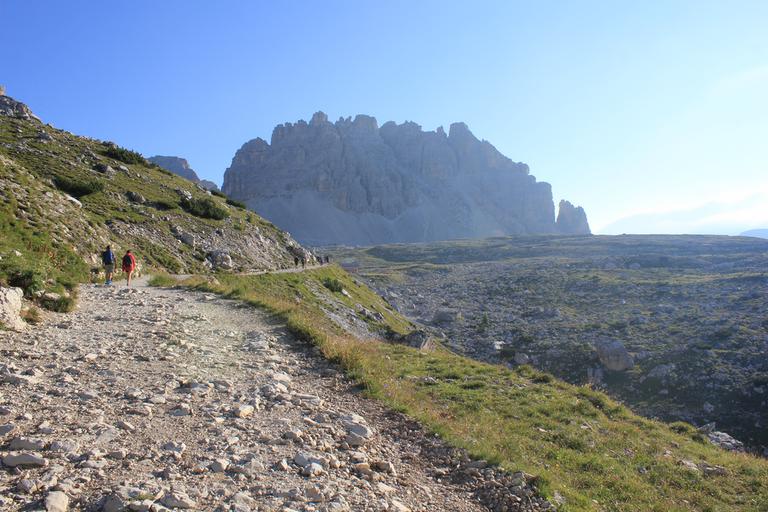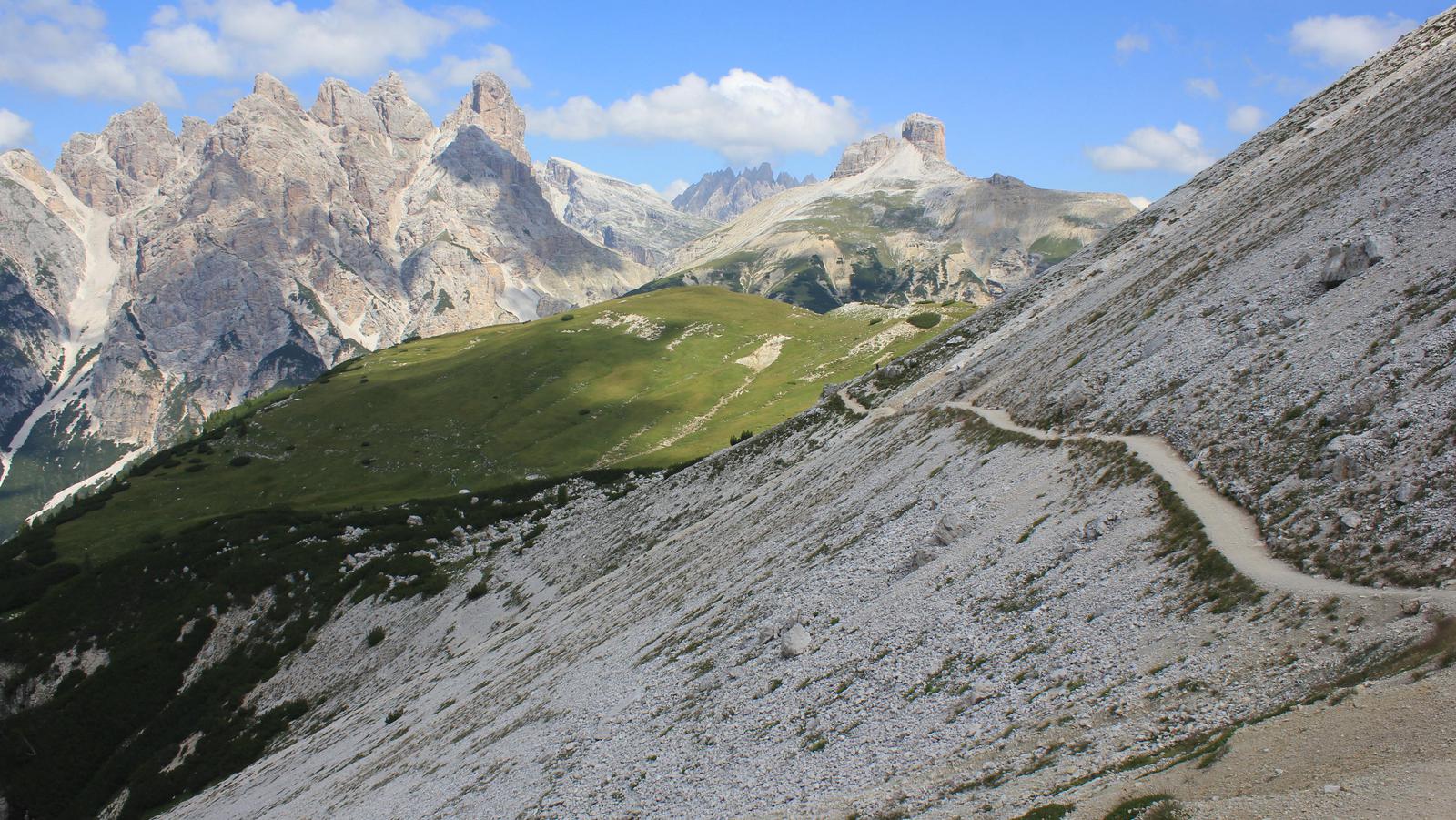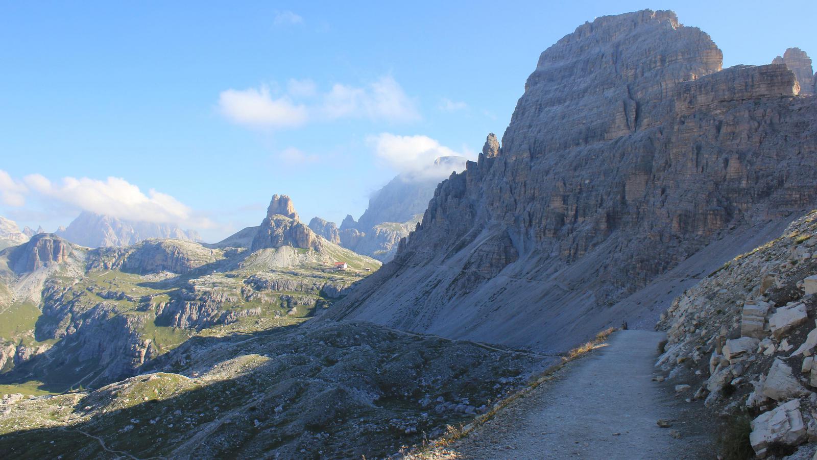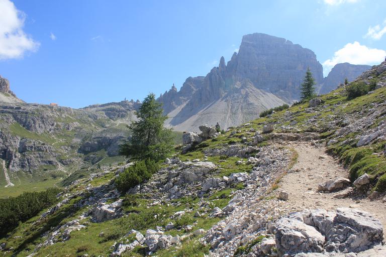Depuis le départ nous suivons le sentier 101. Celui-ci se poursuit maintenant dans l'ombre du mont Paterno en direction du refuge Locatelli que nous avons déjà en point de mire.
