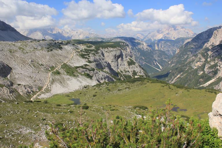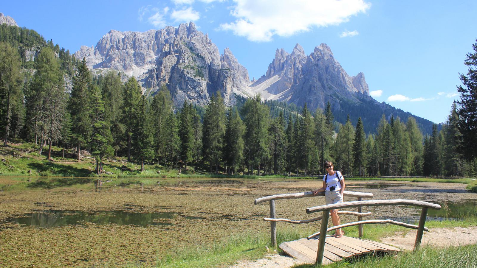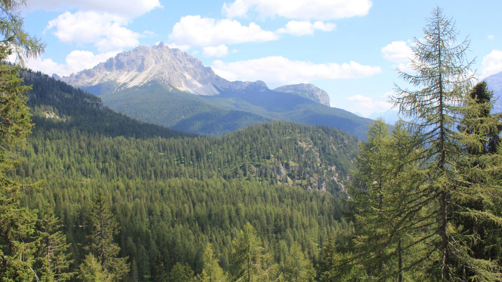 Durant la première partie, nous marchons à l'ombre des mélèzes entre lesquels nous avons une vue extraordinaire sur la vallée d'Auronzo. Quelques kilomètres plus loin, c'est le lac de Misurina que nous pouvons apercevoir.