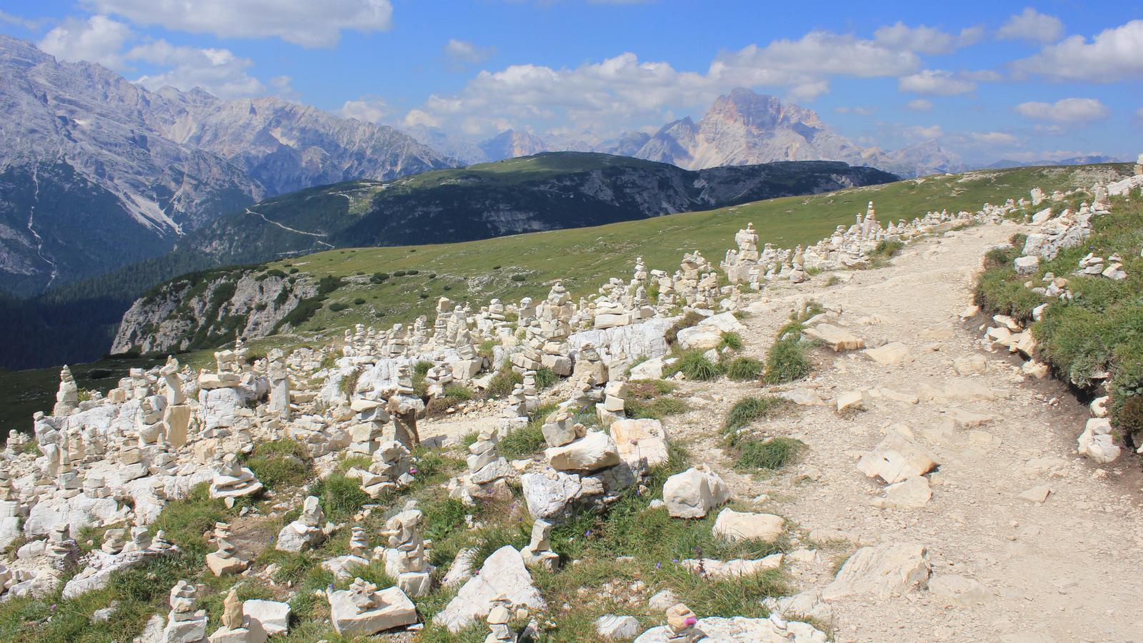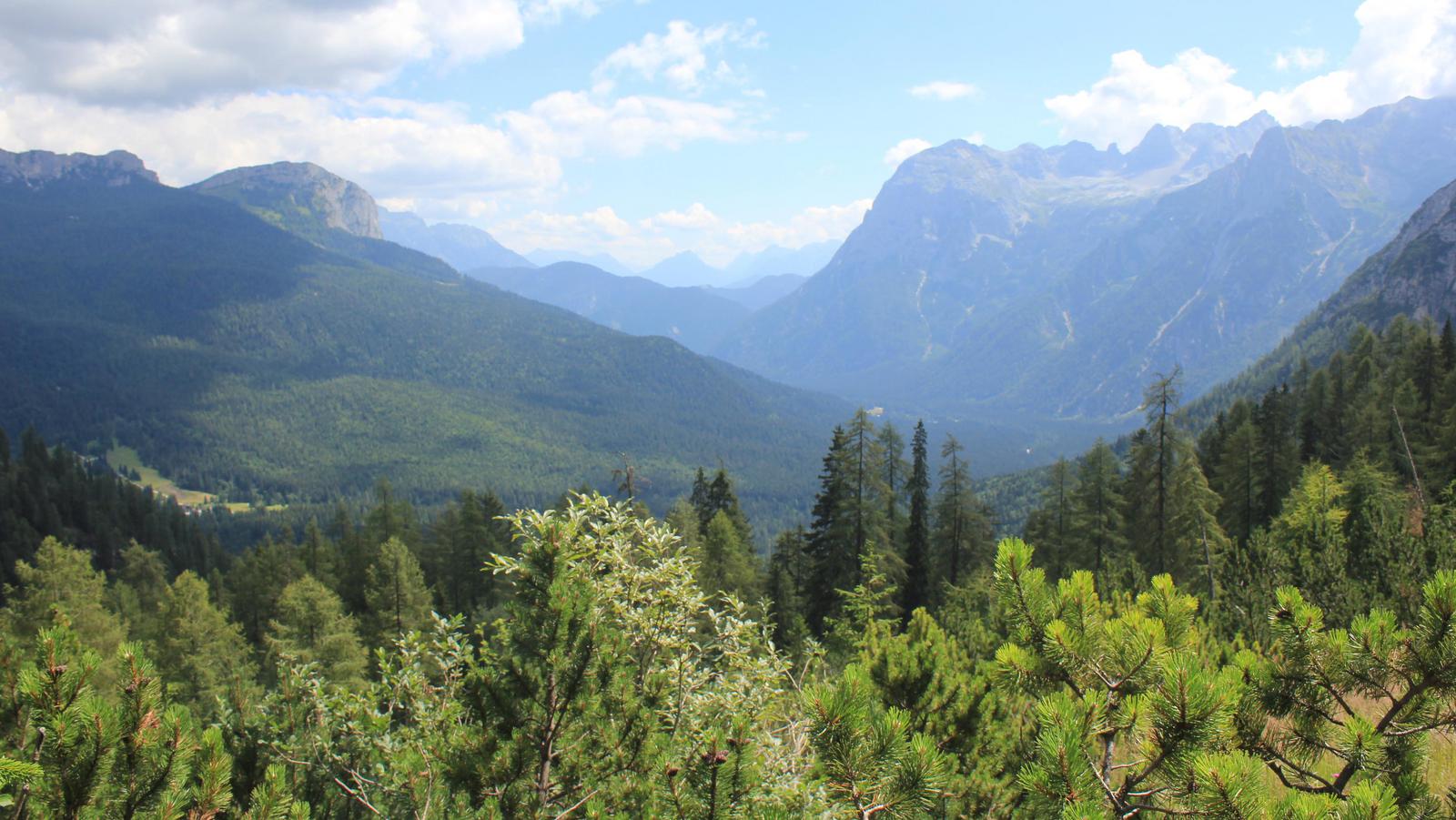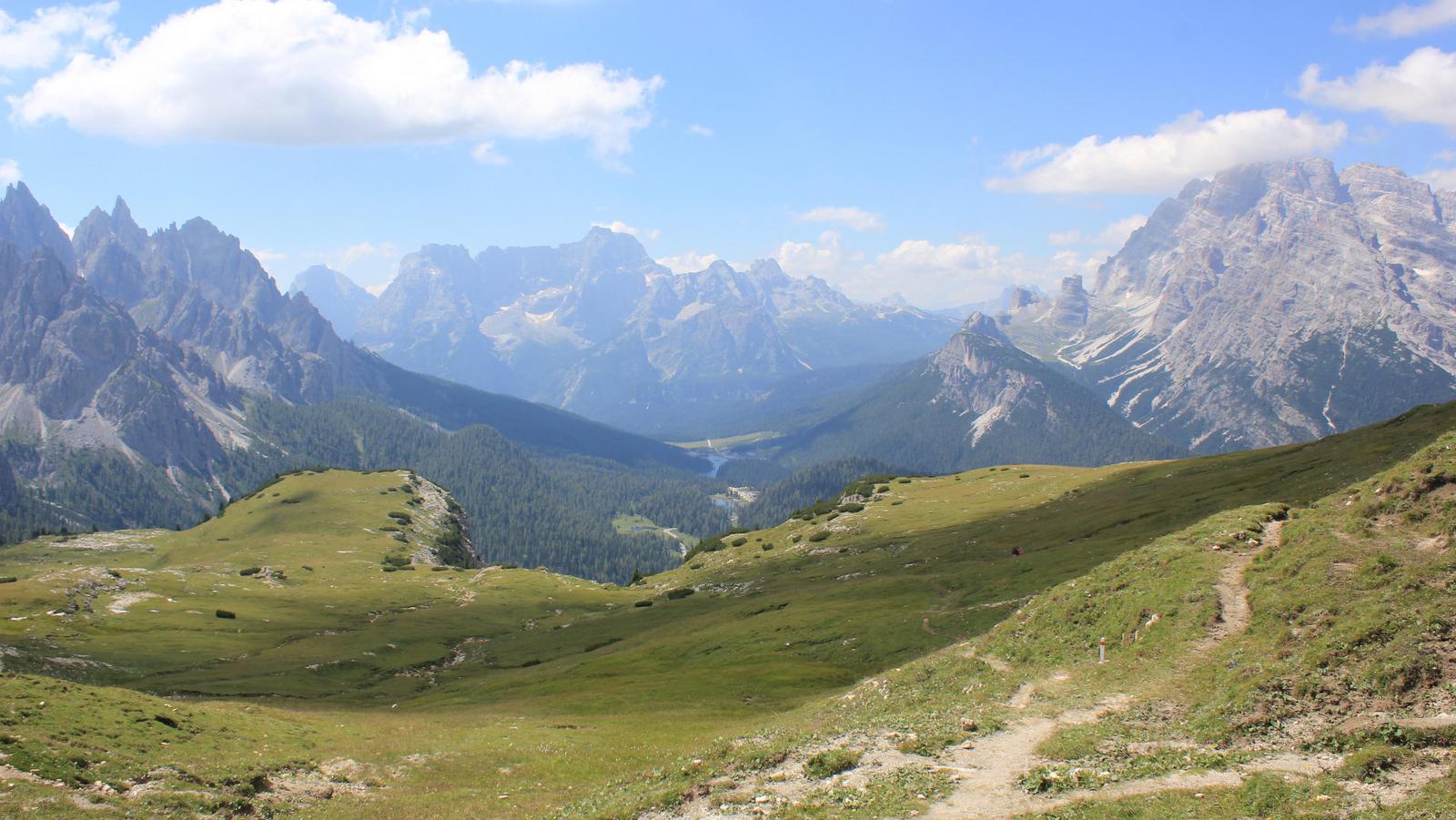 Durant la première partie, nous marchons à l'ombre des mélèzes entre lesquels nous avons une vue extraordinaire sur la vallée d'Auronzo. Quelques kilomètres plus loin, c'est le lac de Misurina que nous pouvons apercevoir.