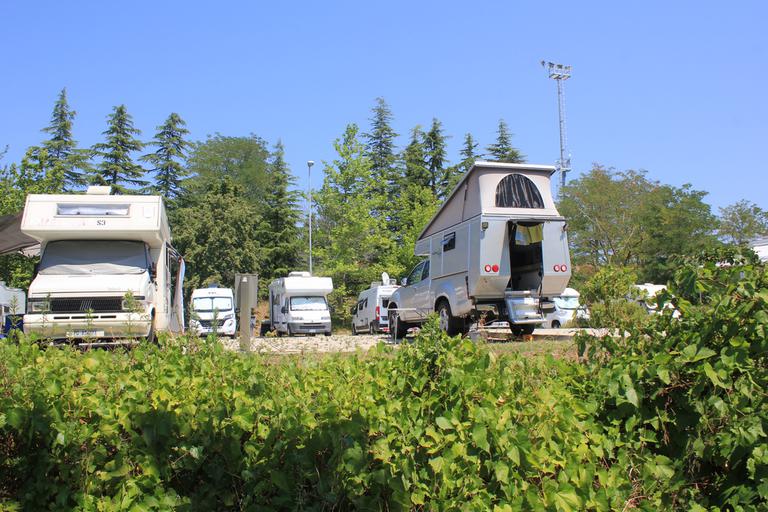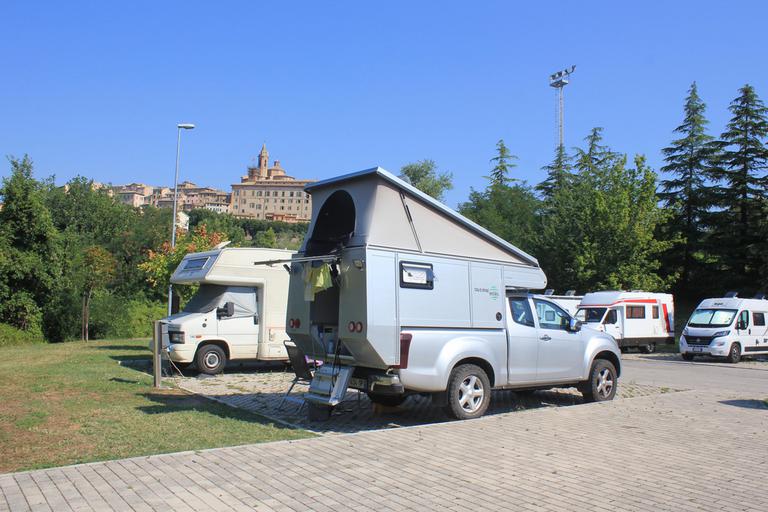 Isa est sous la douche lorsque nous avons la visite de deux carabinieri. Toute cette installation n'est pas à leur goût, il est autorisé de stationner, mais pas de camper. Ce n'est pas comme si nous ne le savions pas, mais il faut reconnaître que ce n'est pas de chance. C'est une mauvaise journée, nous ne recevons pas d'amende mais nous sommes maintenant fichés et nos passeports sont enregistrés...