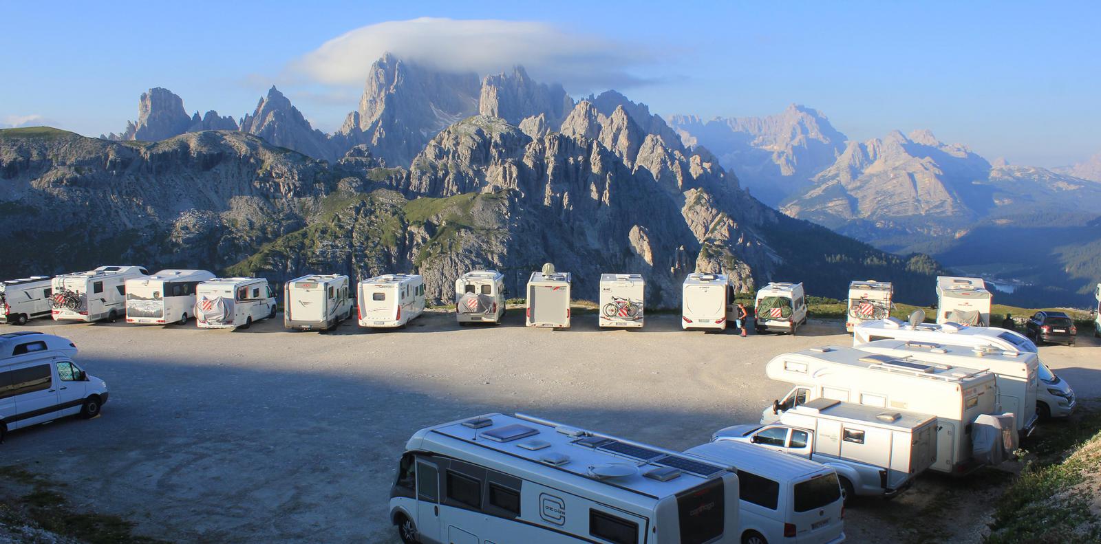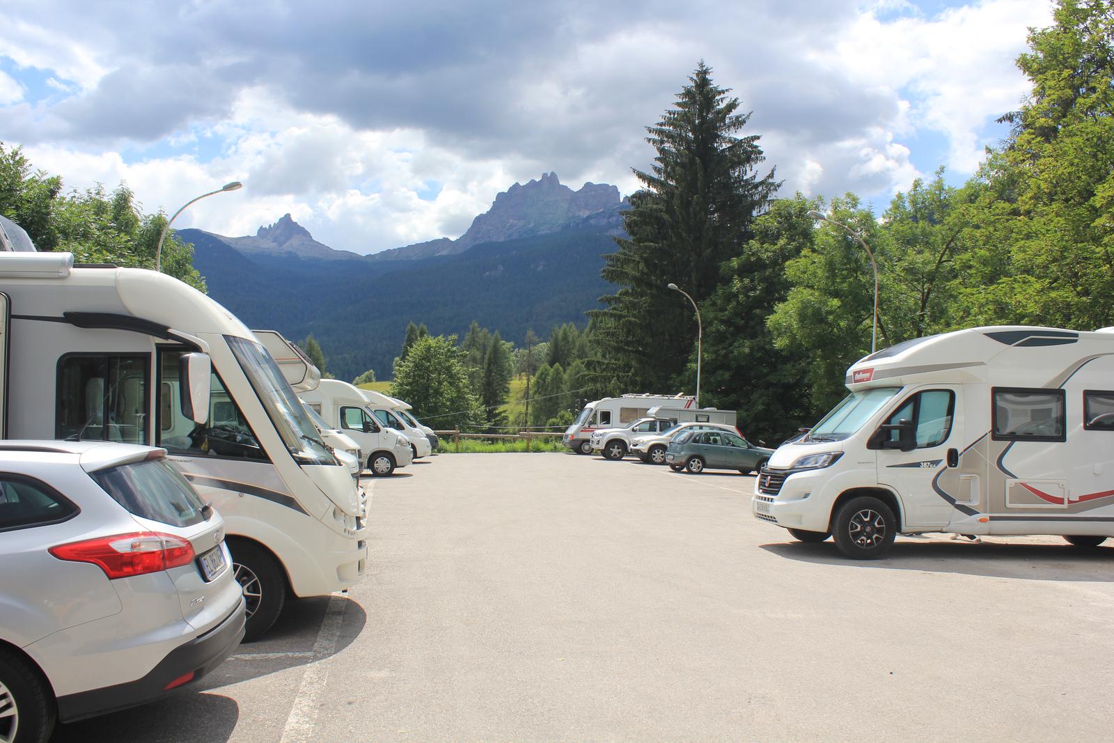 Nous arrivons à Cortina d'Ampezzo. Le hasard me conduit directement sur le parking autorisé aux camping-cars, où une place nous y attend.