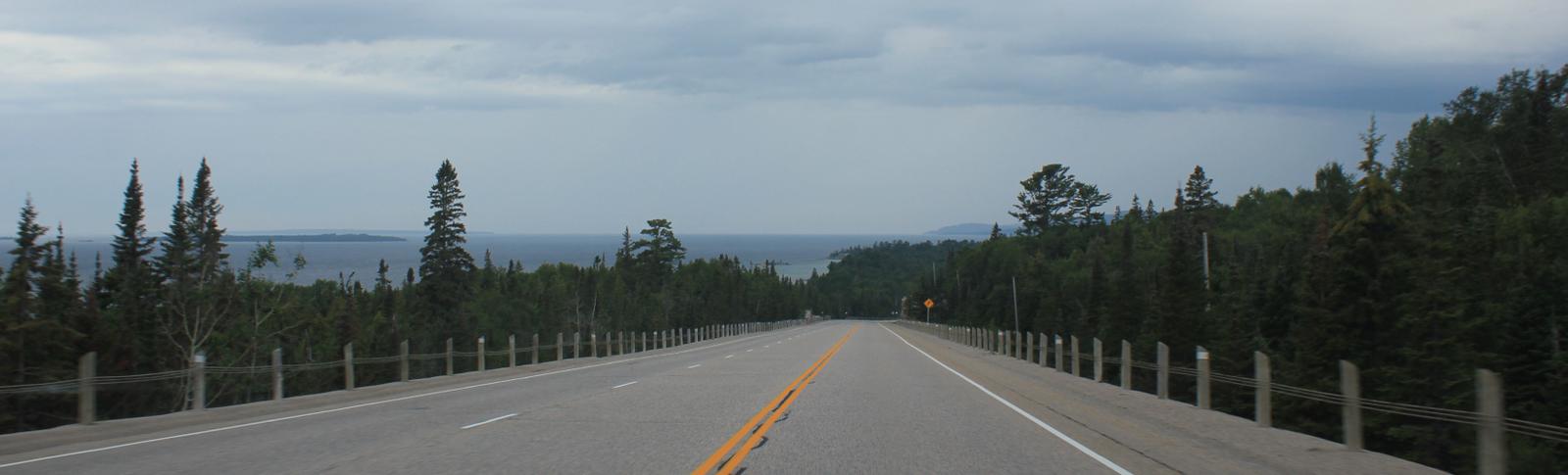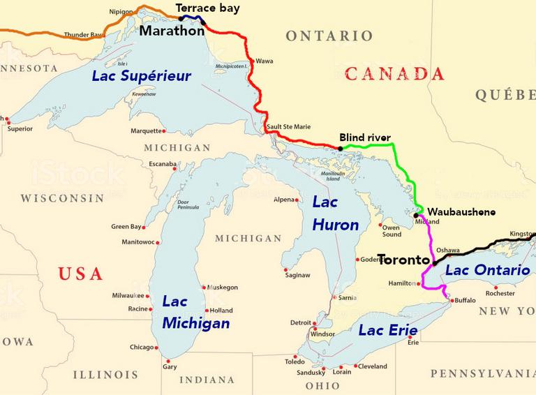 Nous quittons les rives du lac Huron, maintenant nous longeons celles du lac Supérieur. Nous nous arrêtons pour la nuit à Marathon.