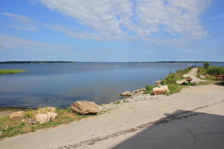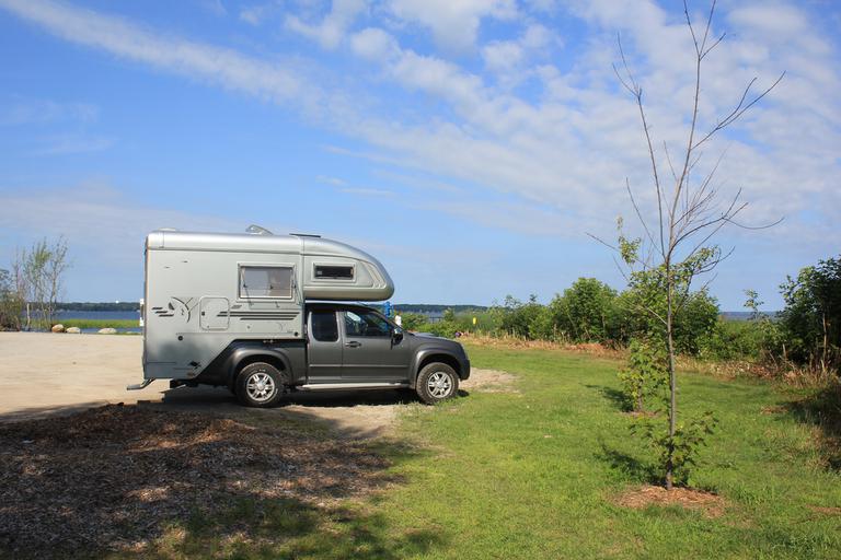 Il y a un peu d'animation ce matin sur le petit parking de Waubaushene. Quelques pêcheurs se sont installés sur le ponton de bois, des personnes promènent leur chien, un groupe de dames met à l'eau des canoës, nous nous déplaçons au fond du parking de manière à ne gêner personne.