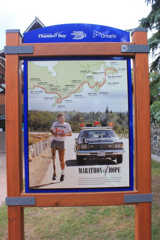 La maladie ne lui laissa pas le temps d'achever son Marathon de l'espoir, il dû stopper sa course ici, à Thunder Bay, après avoir traversé toutes les provinces depuis Terre-Neuve et parcouru 5 373 km. Il décèdera quelques mois plus tard, considéré comme un héros par tout le pays. Chaque année, la course Terry Fox est organisée en sa mémoire.