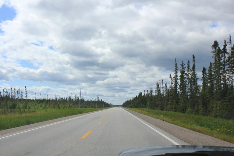 Journée de route au cours de laquelle le beau ciel bleu du matin disparaît au fil de heures. Nous traversons d'immenses forêts de résineux chétifs.