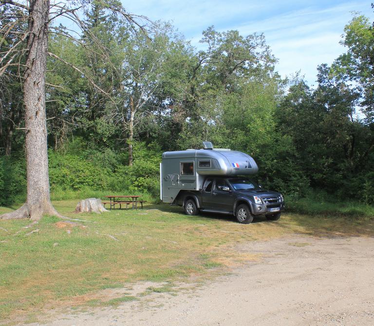 Nous nous arrêtons pour la nuit sur une aire en retrait de la Trans-Canada Highway un peu avant Brandon. Nous avons parcouru 427 km ce jour, 8 291 km depuis notre arrivée à Halifax