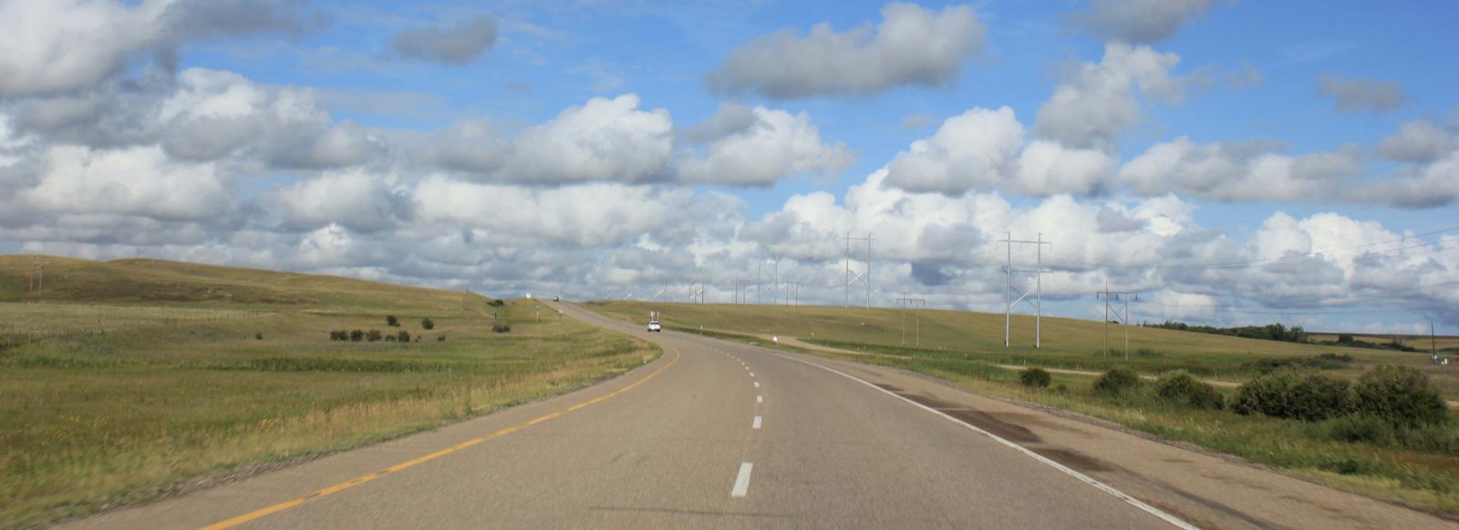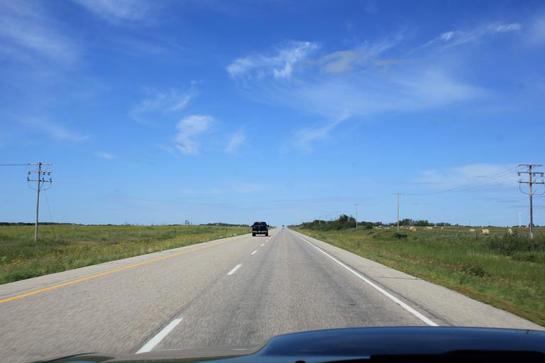 La Trans-Canada Highway est maintenant en 2x2 voies, nous en avons fini avec les lacs et forêts, place aux champs de céreales.