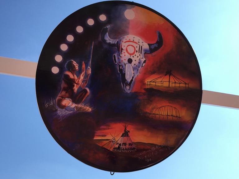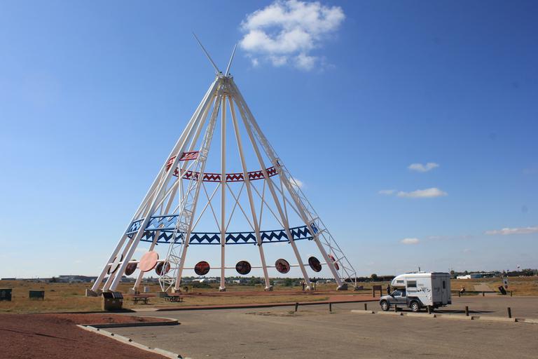 Nous arrivons à Medicine Hat, nous venons d'entrer en Alberta. Nous nous arrêtons faire plein et vidange à l'office du tourisme et allons voir le Tipi géant installé pour les JO de Calgary en 1988.