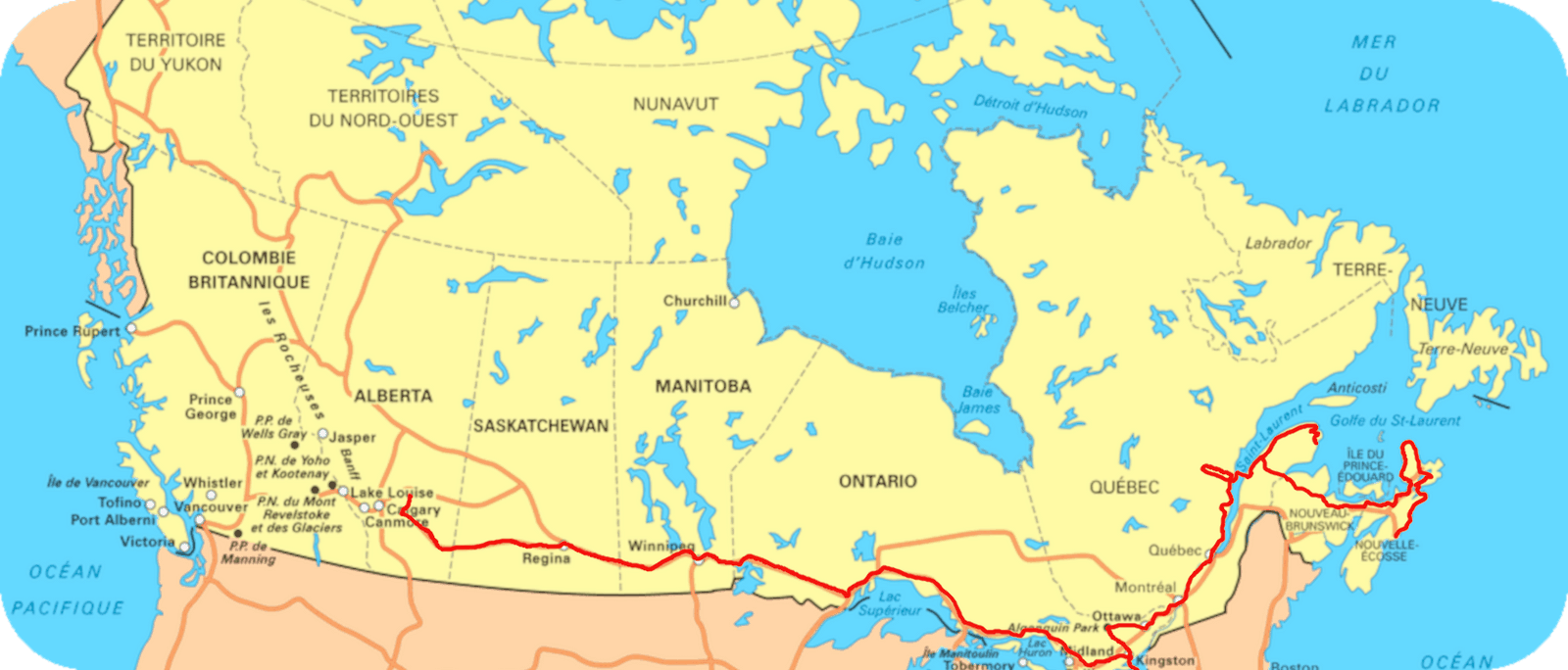 Nous avons parcouru 438 km ce jour, 6 473 km depuis notre arrivée à Halifax