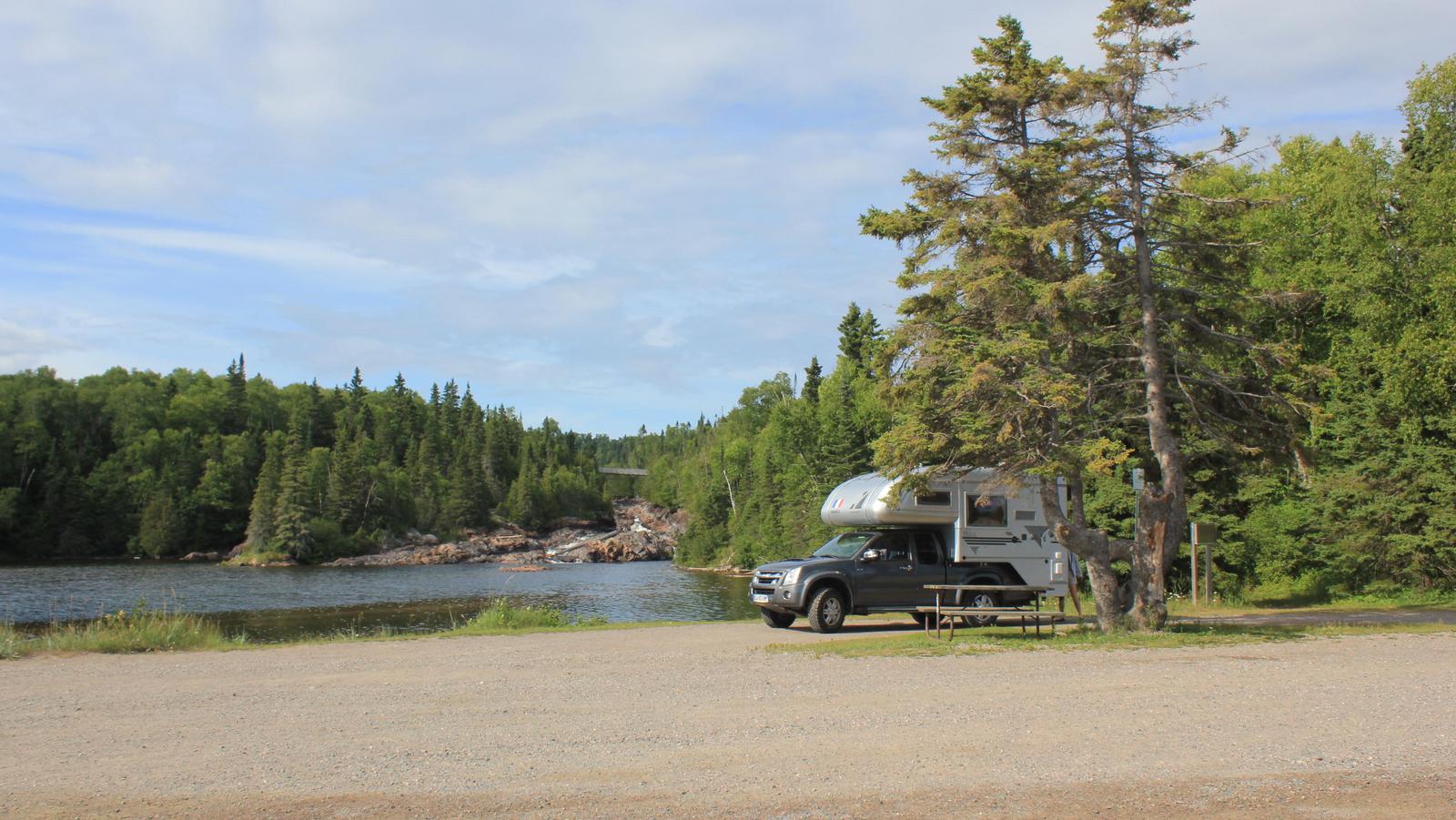 Nous reprenons la route et roulons jusqu'à Terrace Bay pour un joli bivouac en bord de lac.