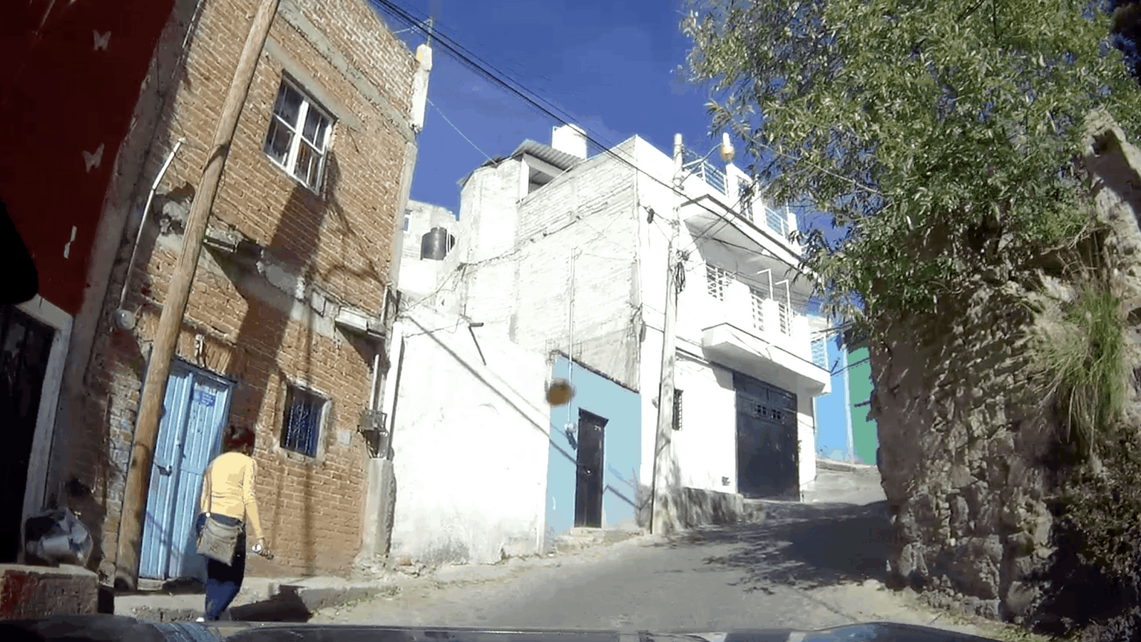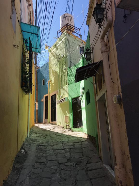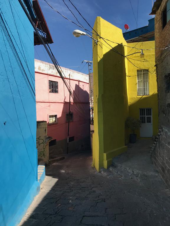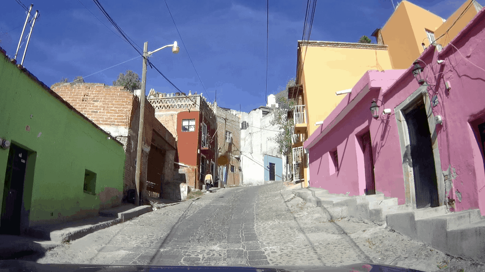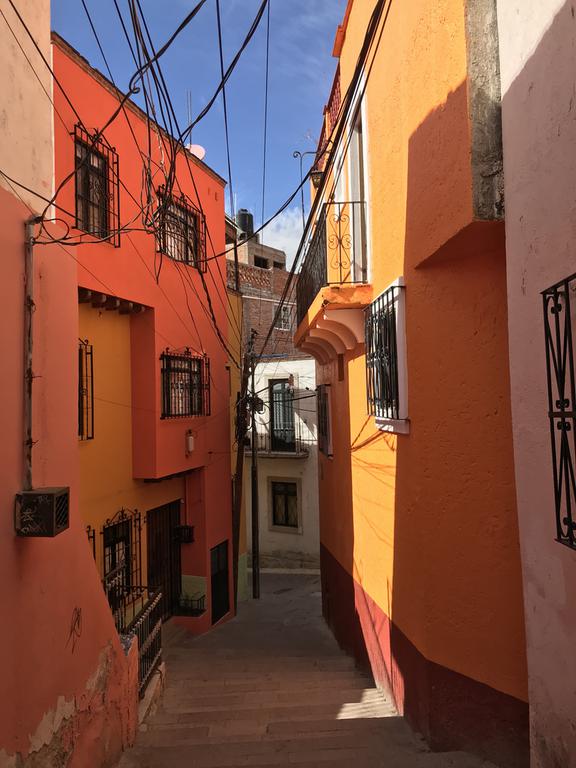 Nous partons à la découverte de Guanajuato. Nous descendons à pied la rue par laquelle nous sommes arrivés la veille, et contrairement à ce que j'imaginais, celle-ci n'est pas en sens unique et les petits camions et les mini-bus l'empruntent. C'est encore pire que ce que je pensais, j'ai eu beaucoup de chance de ne croiser personne...