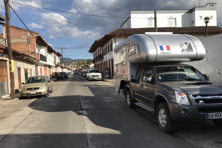 Ioverlander indique principalement des parkings le long des rues du centre ville. Le souci est que nous sommes samedi et qu'il y a beaucoup, beaucoup de monde en ville... Nous tournons durant près d'une heure dans des ruelles très étroites et au moment où je m'apprête à abdiquer, Isa aperçoit un petit parking près de la gare routière à l'entrée de la ville. Elle descend de voiture pour se renseigner. Aucun problème, le gardien nous attend et nous ouvre la porte, 80 pesos soit 4€ les 24h00 et nous pourrons y passer la nuit... Nous partons à la découverte de la ville.