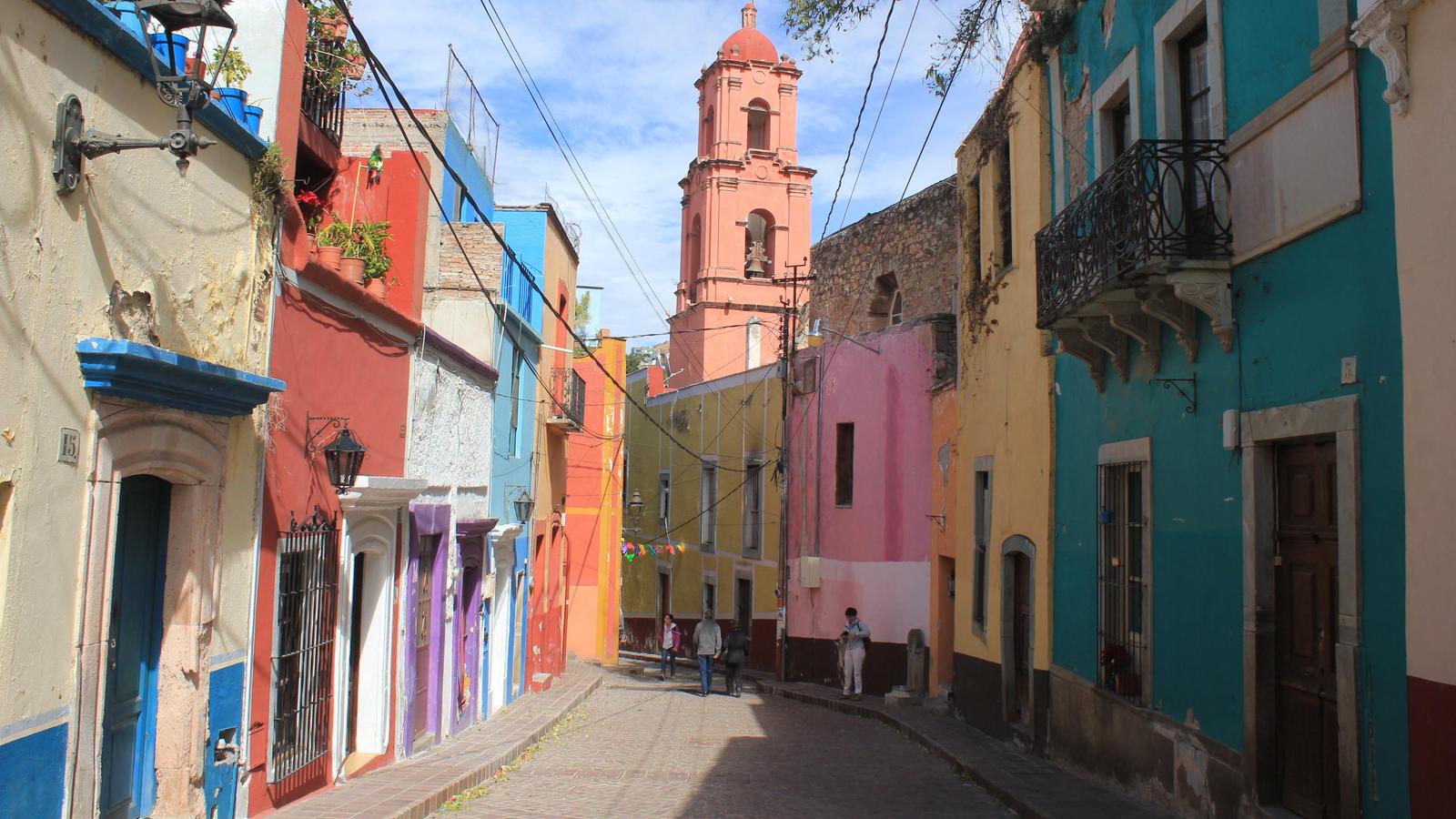 Nous passons la journée à visiter cette belle ville, de la cathédrale aux coupoles revêtues d'azulejos au Palacio de Gobierno, un ancien séminaire de 1750 aux beaux patios cernés d'arcades. Pour achever la journée, nous marchons en suivant l'acqueduc jusqu'au Santuario de Nuestra Señora de Guadalupe, à l'extraordinaire décoration baroque.