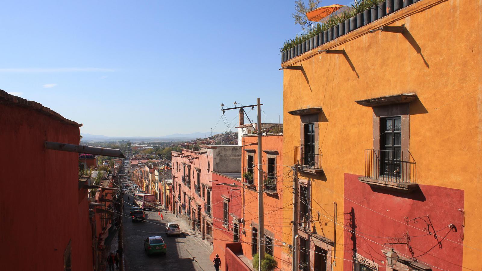 San Miguel de Allende compte 70 000 habitants et a été classée au Patrimoine mondial de l'Unesco en 2008. La ville est bâtie sur une colline, et les quartiers les plus anciens sont au sommet de celle-ci. Elle est aussi colorée que Guanajuato, mais ici seulement deux couleurs dominent, le jaune et le rouge brique.