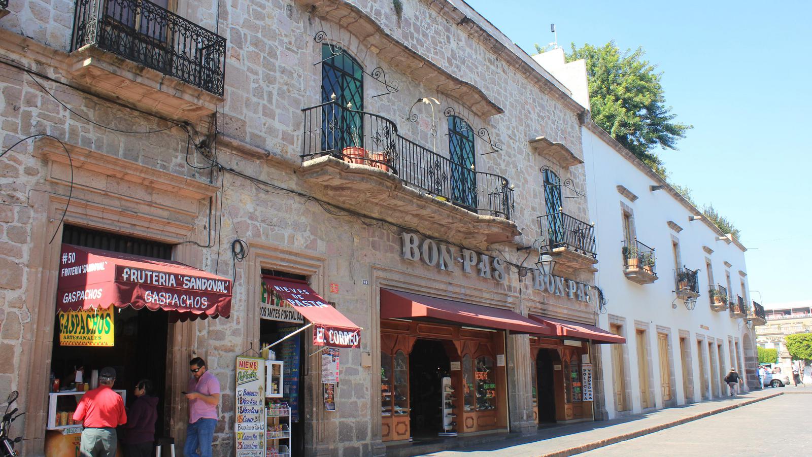 Nous rejoignons le Zocalo, la grande place du centre. Cette dernière ville coloniale est une nouvelle fois totalement différente des précédentes. Ici, pas de maisons colorées, le coeur historique est composé de splendides bâtiments revêtus de pierres brun-rose. La ville est aussi bien différente, plus bourgeoise.