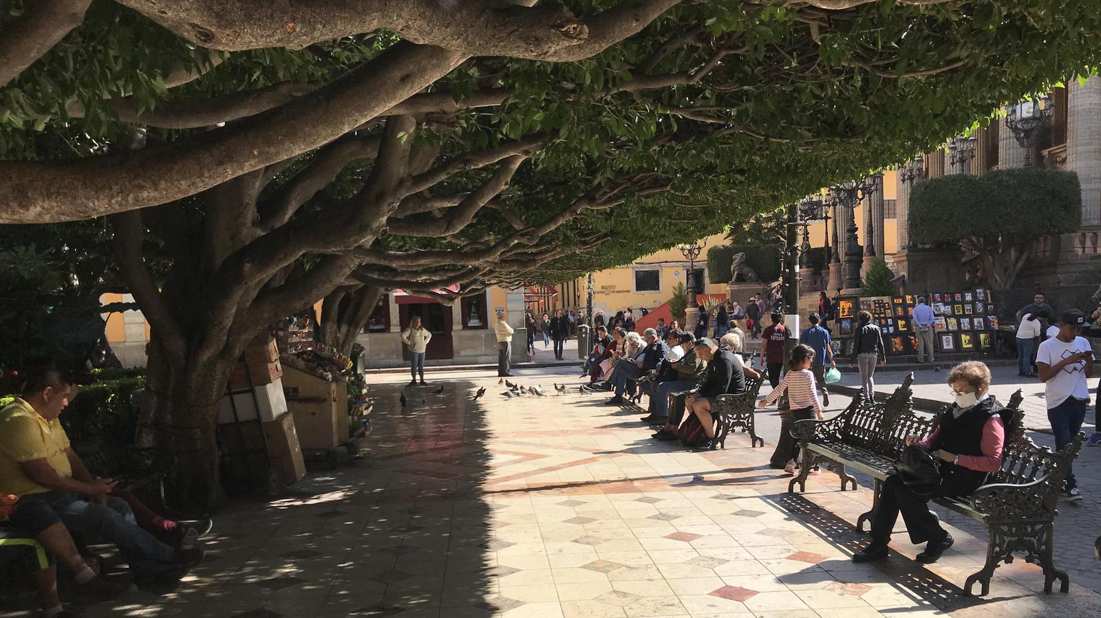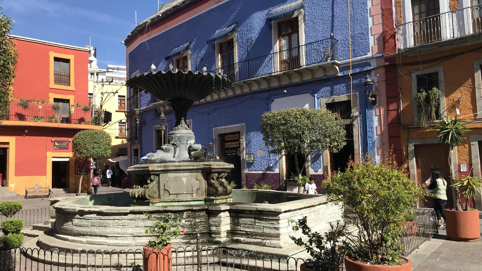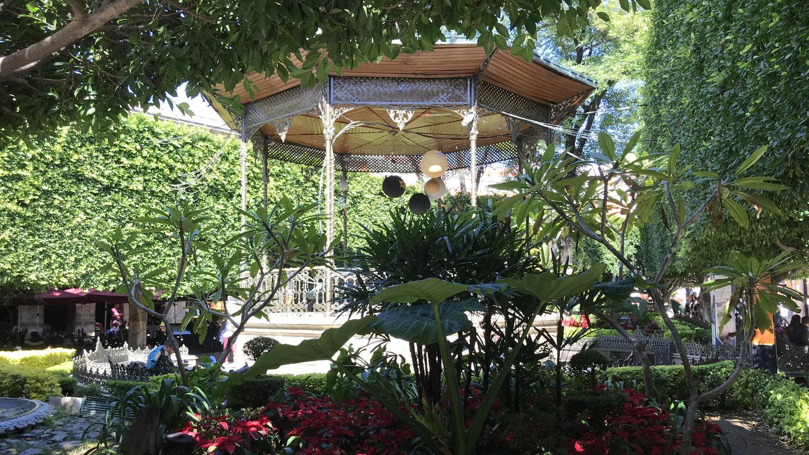 Puis nous retournons déjeuner près du Mercado Hidalgo. Nous consacrons la fin d'après-midi, au jardin de l'Union et au Teatro Juarez qui lui fait face.