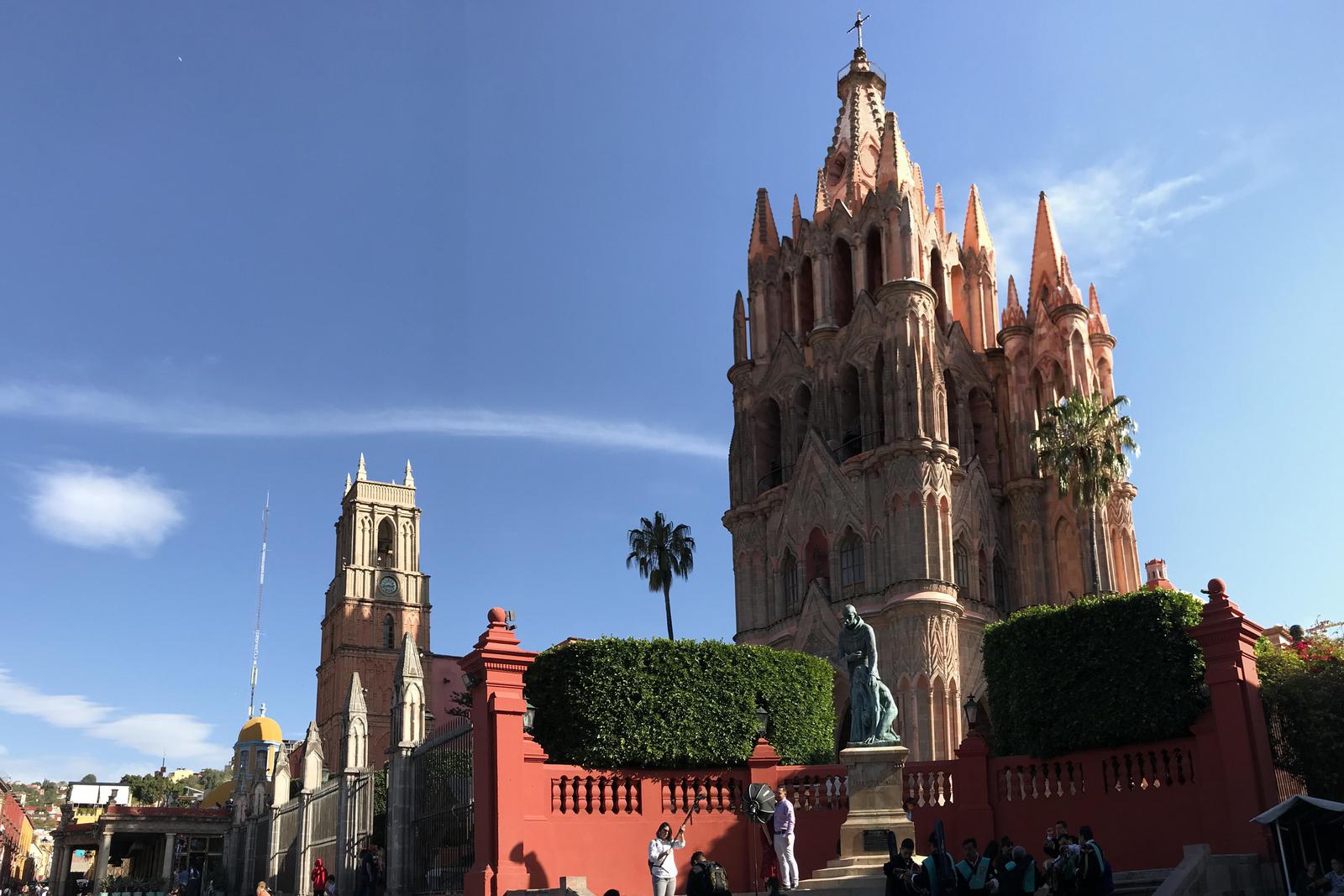 Le centre animé se trouve autour de la Plaza Principal et de la Parroquia de San Miguel Arcangel. Cette dernière a une curieuse architecture qui lui donne un air de Sagrada Familia. Nous laissons ce quartier très touristique de la ville pour les ruelles de la partie haute. ici, toutes les maisons ont fait l'objet d'une rénovation et sont à présent propriétés d'américains aisés. Sur les toits de ces belles maisons bâties en gradin, de magnifiques terrasses végétalisées ont été aménagées. Les prix ont flamblé, c'est vraiment très beau mais il n'y a plus aucun mexicain...