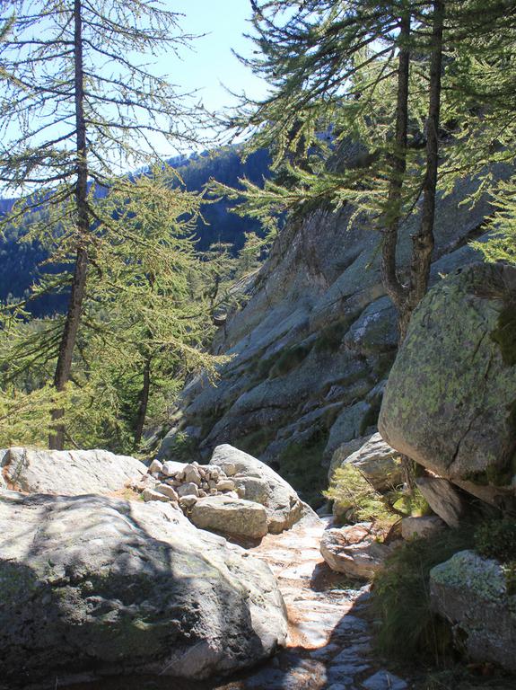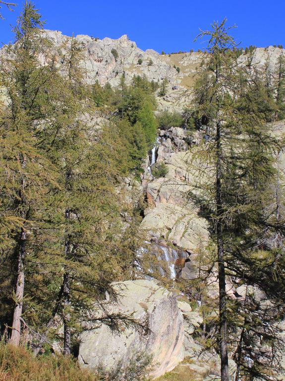Nous remontons le vallon de la Minière jusqu'à l'ancienne mine d'argent, de plomb et de zinc, la minière de Vallauria, exploitée jusqu'en 1929. Nous passons ensuite une petite retenue d'eau et entrons dans la forêt. Nous débouchons ensuite sur une piste carrossable, que nous suivons un court moment, puis bifurquons sur un sentier empierré très raide, au plus près du torrent.