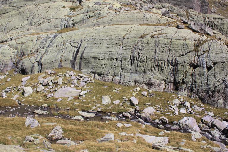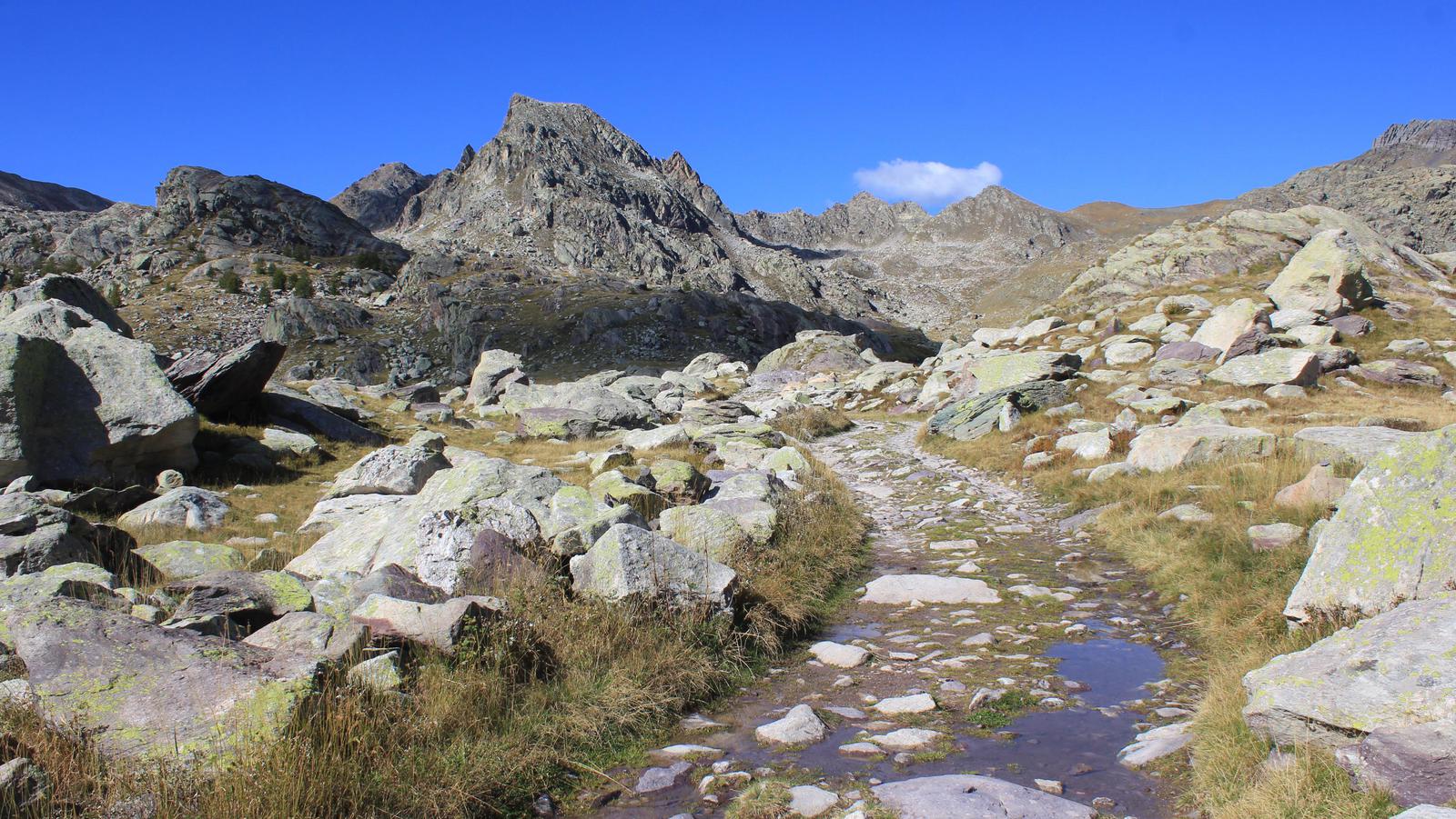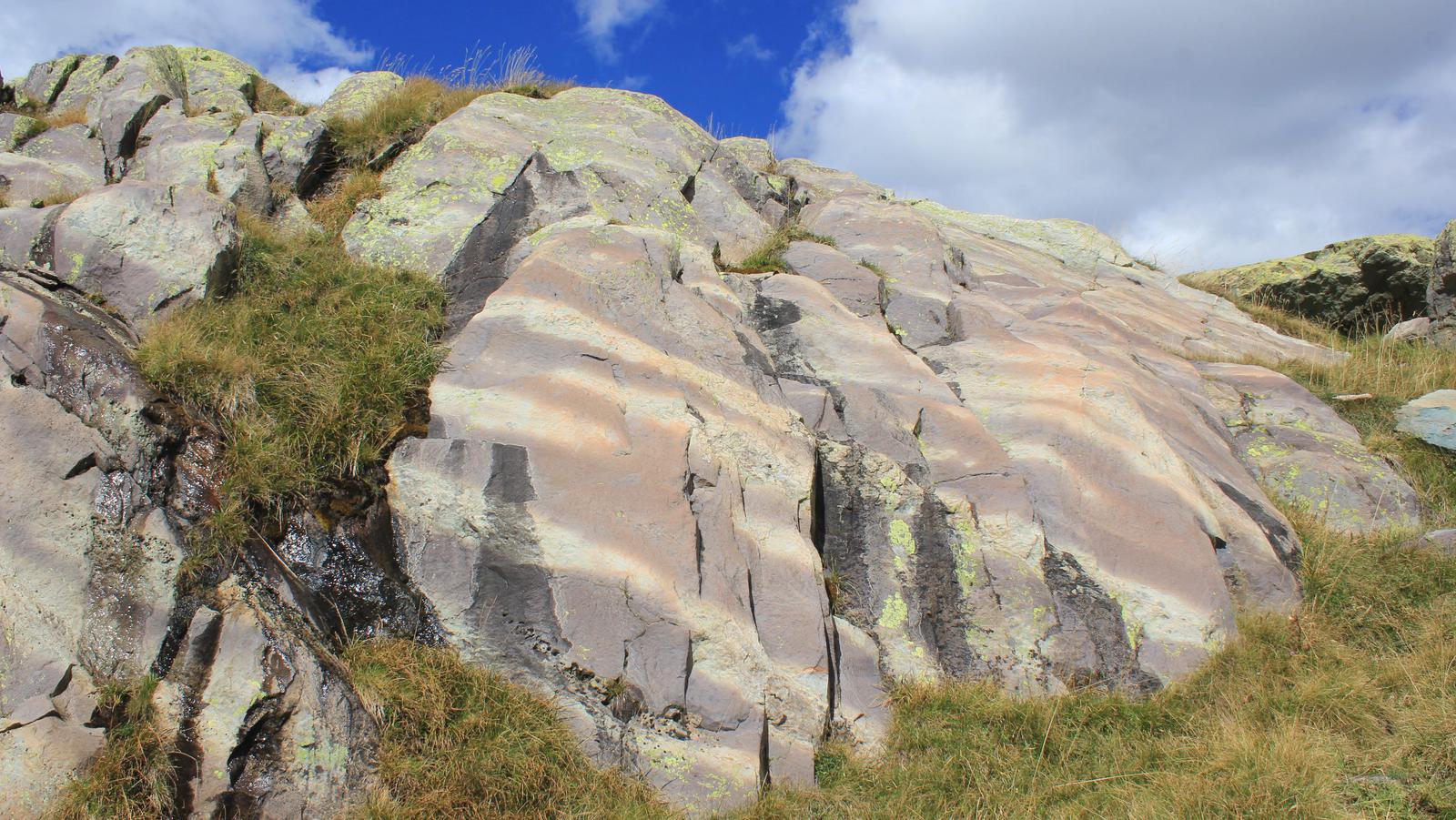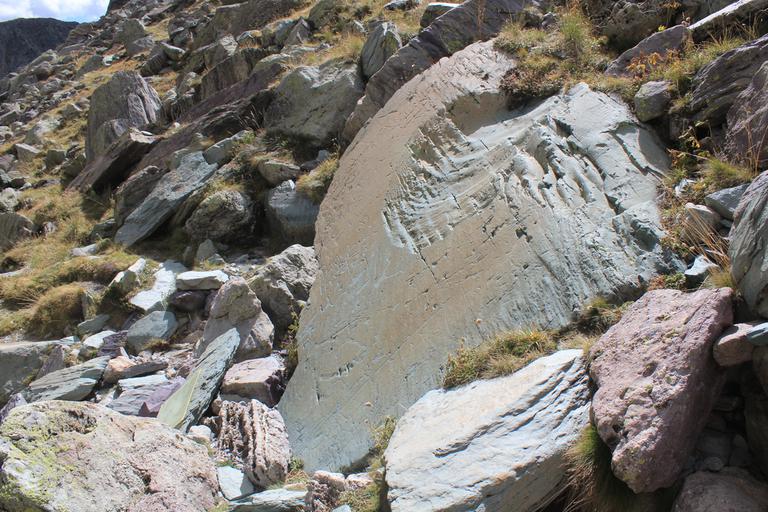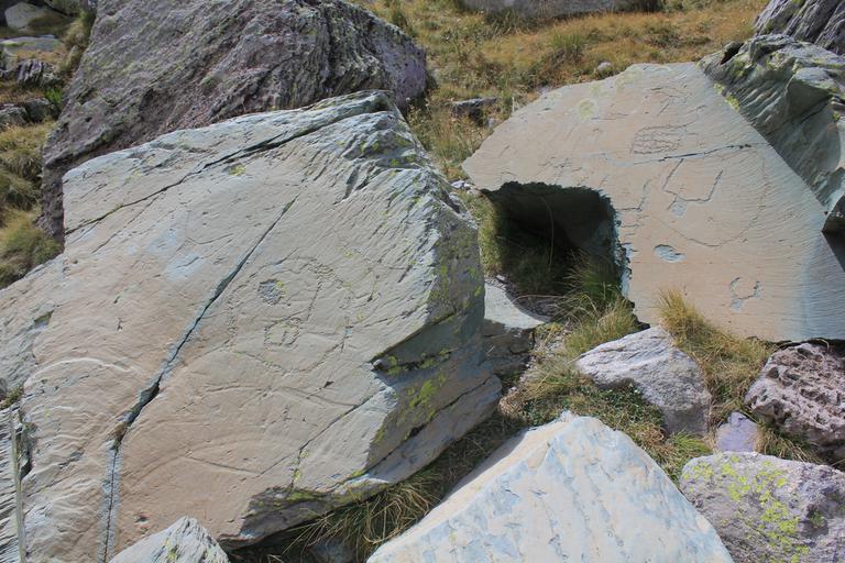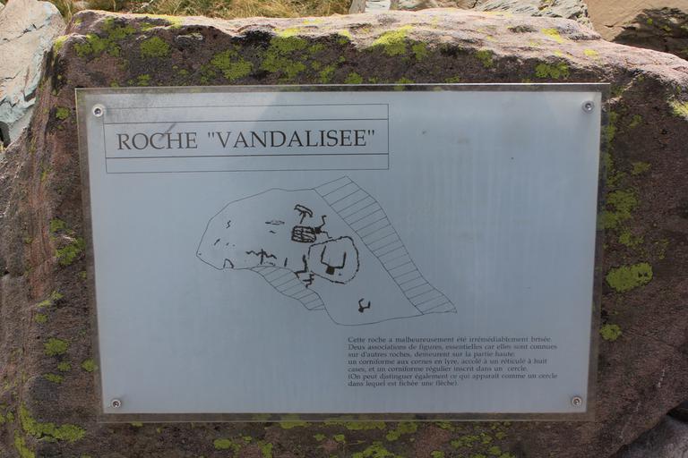 Le sentier contourne l'extrémité du lac long supérieur et s'élève au-dessus de celui-ci en direction du mont Bego. Nous arrivons devant un panneau explicatif, nous pourrons découvrir les quelques gravures en bord de sentier, en revanche il est interdit de quitter celui-ci sans l'accompagnement d'un guide.