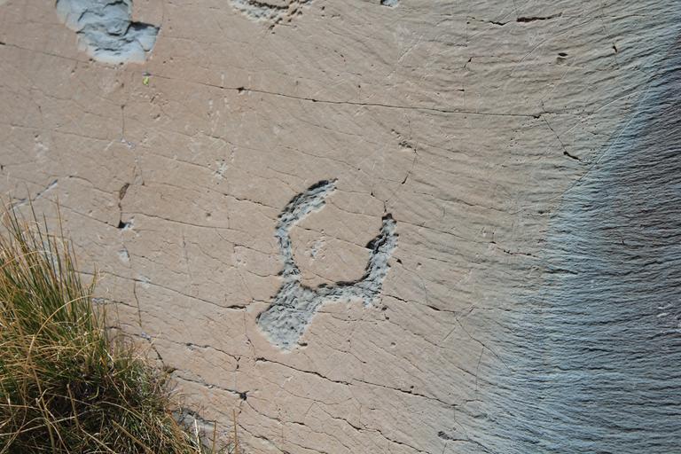 La première gravure que nous rencontrons est la Roche Vandalisée. Nous passons ensuite au pied de la Paroi Vitrifiée. Celle-ci ressemble par endroit à un véritable marbre poli, de nombreuses gravures apparaissent en partie basse de celle-ci, mais il est bien difficile de cerner le dessin authentique du graffitis rapporté... Nous continuons de grimper en direction de la stèle du Chef de Tribu, la gravure emblème de la vallée.