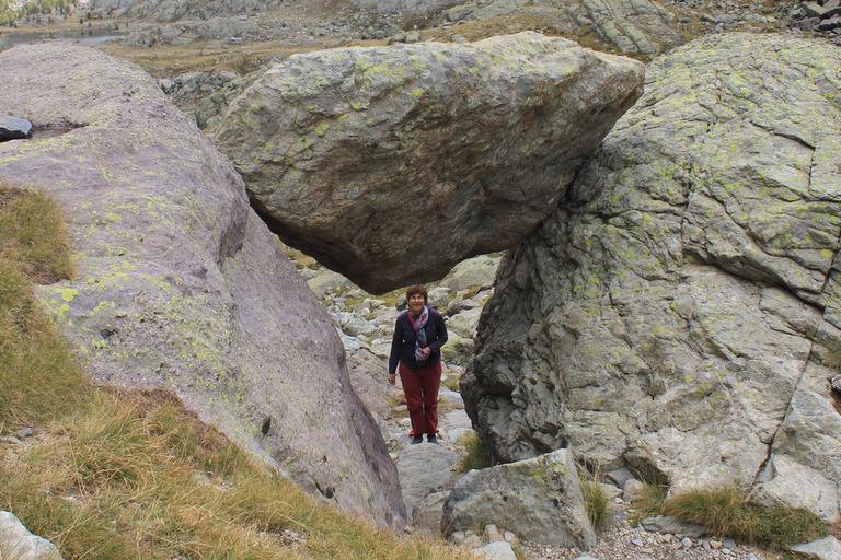 Le refuge est maintenant en vue. Un guide attend son groupe, je lui décris l'endroit d'où nous venons et lui demande où se trouve le Sorcier... Juste avant le lac des Merveilles, nous y étions presque, nous avons de quoi être en rogne. Et en plus, nous avons loupé la gravure du Christ.