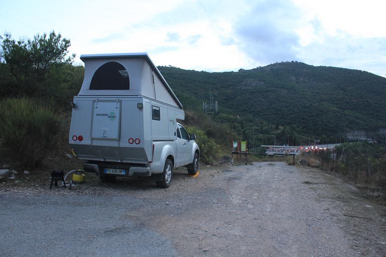 Nous allons nous installer pour la nuit au bout de la petite route, un peu avant la barrière du chemin forestier. Nous sommes juste au-dessus du péage de La Turbie.