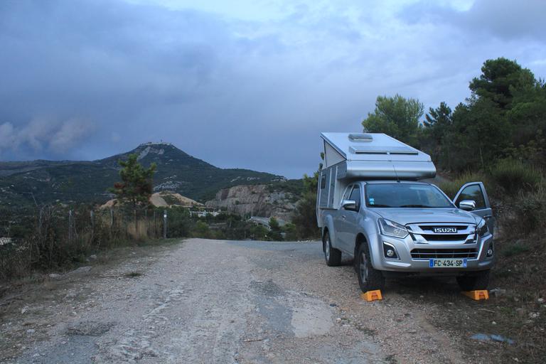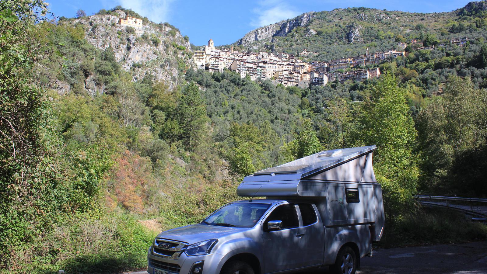 Avec la fatigue et les boules Quiès, je n'ai guère entendu la turbine du lac cette nuit. Il y aurait d'autres belles randonnées à faire ici, mais nous devons impérativement régler ce problème d'embrayage. Un concessionnaire Isuzu se trouve justement à La Turbie, nous décidons de nous y rendre dans l'après-midi de manière à nous y présenter dès l'ouverture lundi matin.