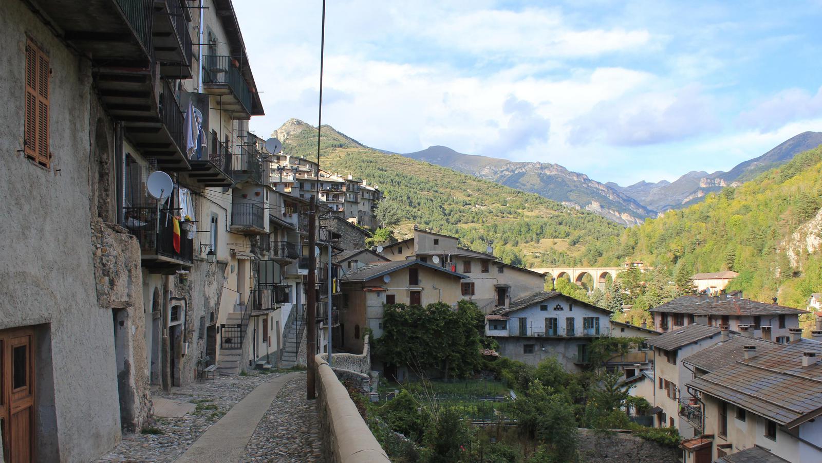 Nous retournons nous promener dans le village en fin d'après-midi, le soleil est même revenu et nous avons un beau ciel bleu. Tende est une commune bien particulière, nichée tout au fond de la vallée de la Roya. Jusqu'en 1947, elle était italienne, rattachée à la province de Cuneo. Du reste, le fleuve qui la traverse, parcourt 40km en France avant de se jeter dans la mer à Vintimille en Italie.