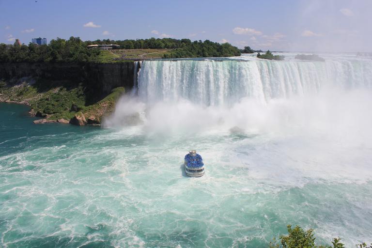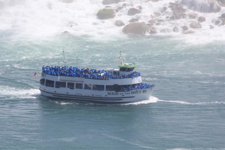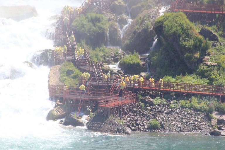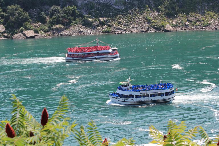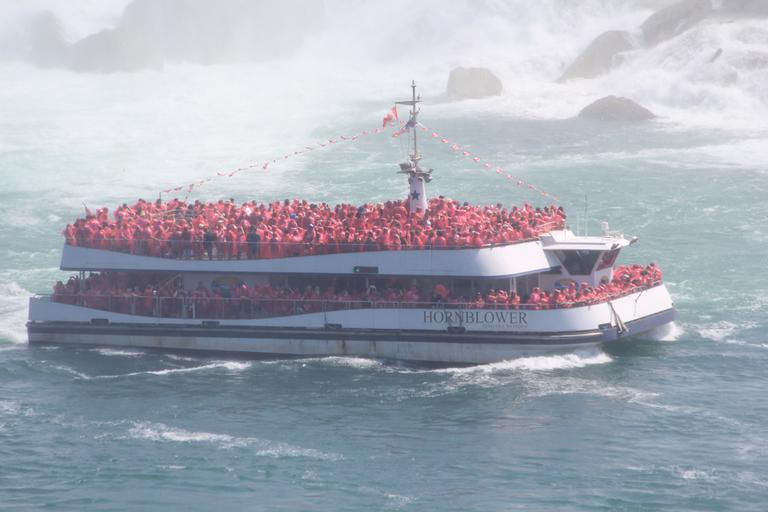 Les croisières sont organisées des deux côtés de la rivière, sur des bateaux pouvant emporter 700 touristes à chaque rotation. Ponchos rouges côté Canada, bleus côté USA, jetables bien sûr, dans d'énormes poubelles à la fin de l'excursion...