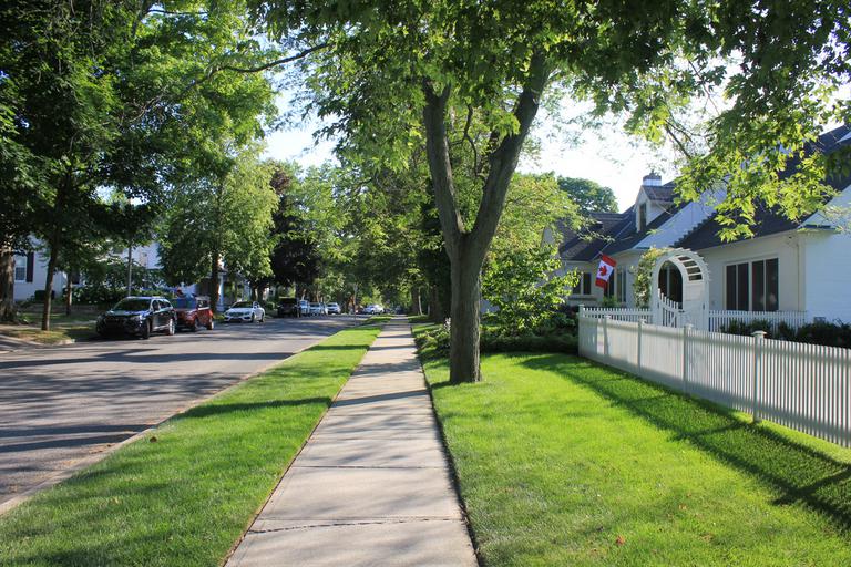 De retour après une balade dans les jolies rues ombragées où nous avons pu admirer de très belles maisons, nous sommes gentillment interpelés par une dame en vélo accompagnée de son mari. Ils sont tous deux français et sont installés depuis plus de 30 ans dans les environs de Niagara-on-the-Lake. Nous échangeons sur nos ressentis du Canada et entre autre sur l'entretien quasi obsessionnel des pelouses que nous constatons dans les provinces anglophones... La dame nous confirme ce côté british des canadiens, mais nous apprend également que la tonte est souvent réglementée, par exemple dans cette commune, pour ne pas être verbalisable, la hauteur de sa pelouse doit être au maximum de 7 inches!
