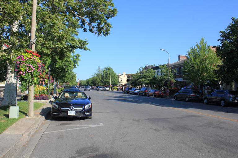 Niagara-on-the-Lake est une petite ville tranquille, à la rencontre entre la rivière Niagara et la lac Ontario. Pour la rejoindre, nous devons traverser de beaux vignobles parsemés de caves de dégustation.