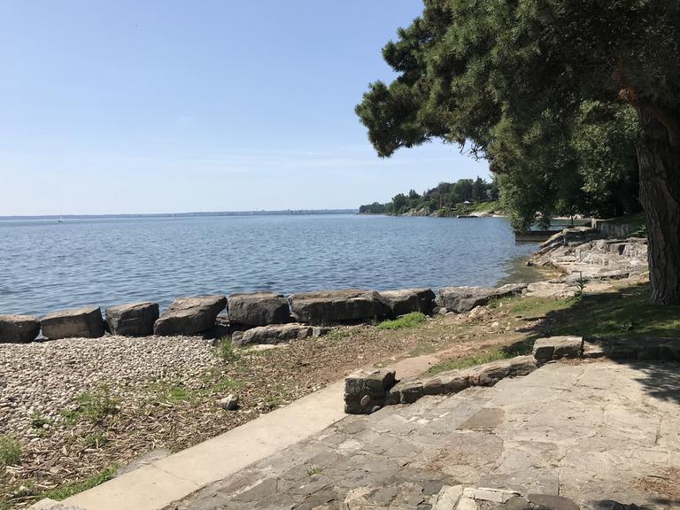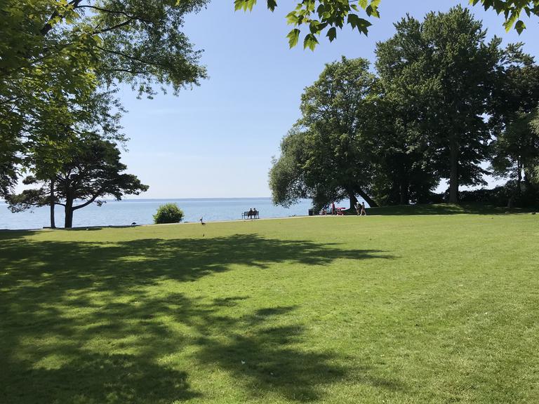 Nous sortons de l'autoroute à Burglinton pour rejoindre Bayfront Park, une adresse indiquée sur Ioverlander. Le quartier est résidentiel, avec de somptueuses villas juste au bord du lac Ontario. Le parc est une de ces propriétés, rachetée par la ville et louée pour l'organisation d'évènements.