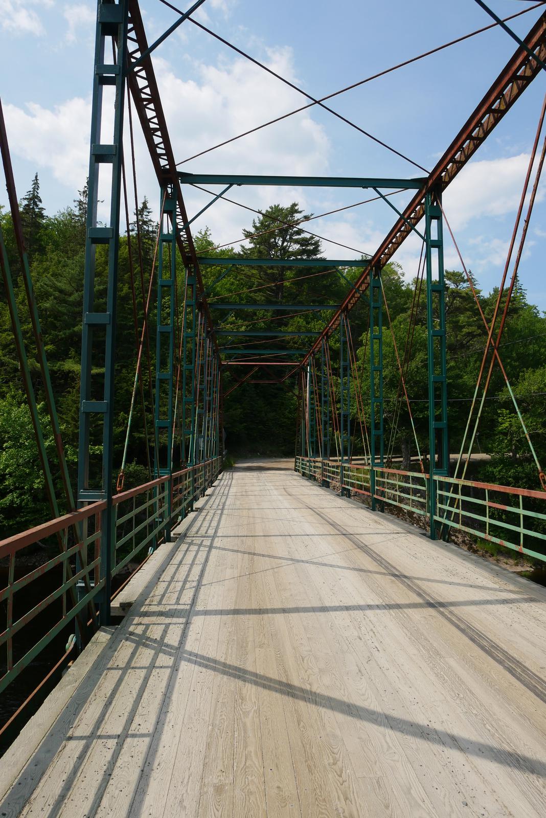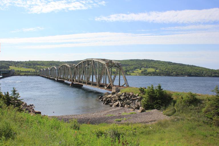 Toujours en route vers la Gaspésie, nous passons Bathurst, puis Campbellton. Dans ces deux villes, deux imposants ponts métalliques enjambent un large estuaire.