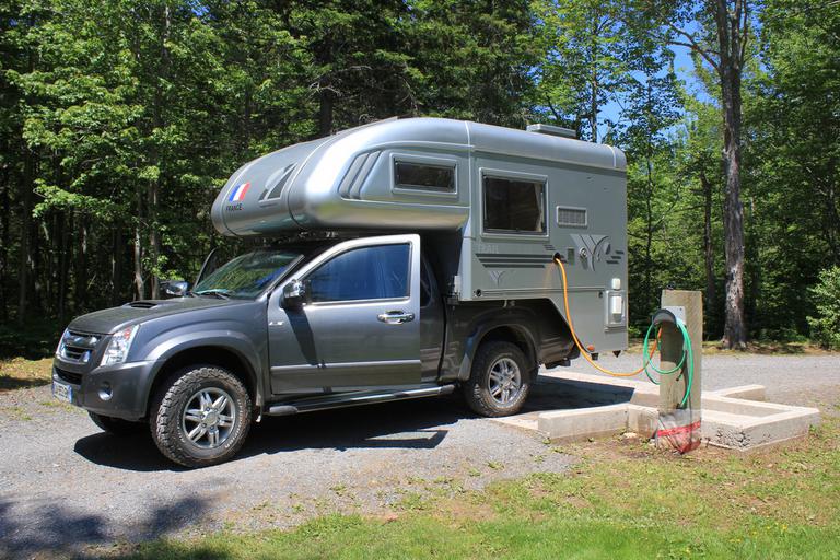 Nous déjeunons au Caribou Munroes Island Provincial Park et en prifitons pour faire plein et vidange sur l'aire de service extérieure gratuite du camping.