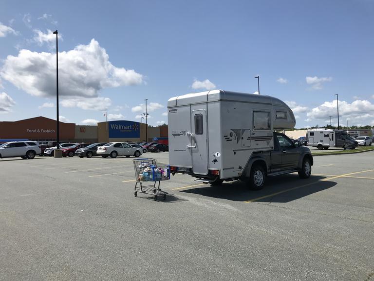 Comme pour beaucoup de camping-caristes débarquant à Halifax, notre premier repas est pris sur le parking d'un Walmart. Nous constatons d'ailleurs à cette occasion que quelques camping-cars et quelques caravanes en ont tristement même fait leur lieu de vie...