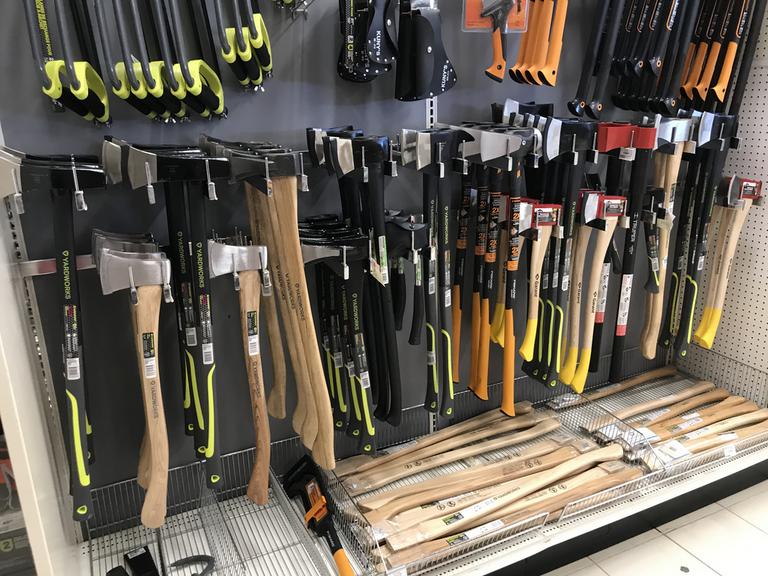 Si nous avions des doutes, le choix offert au rayon hache du supermarché nous le confirme, nous sommes bien au Canada!
